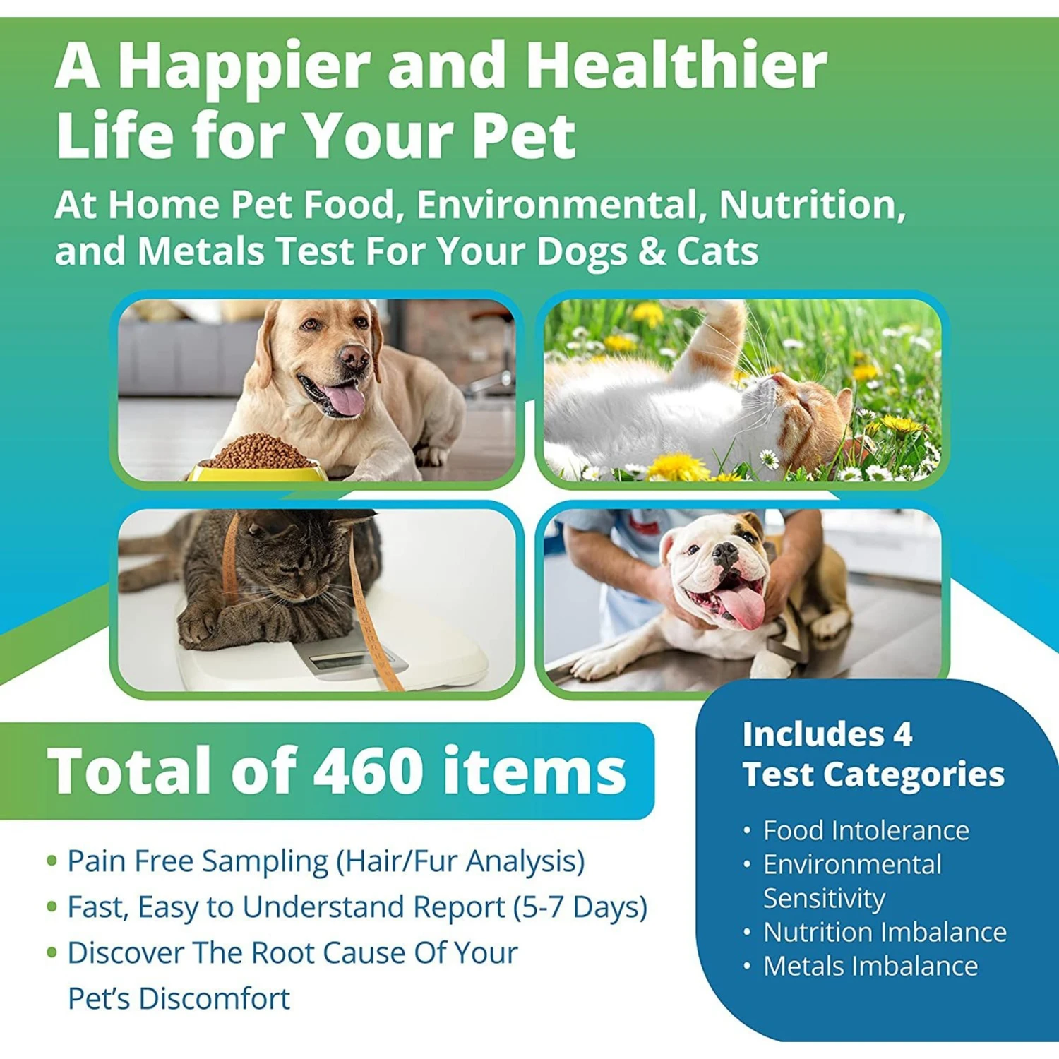 - Uses your pet’s hair for painless, convenient testing.