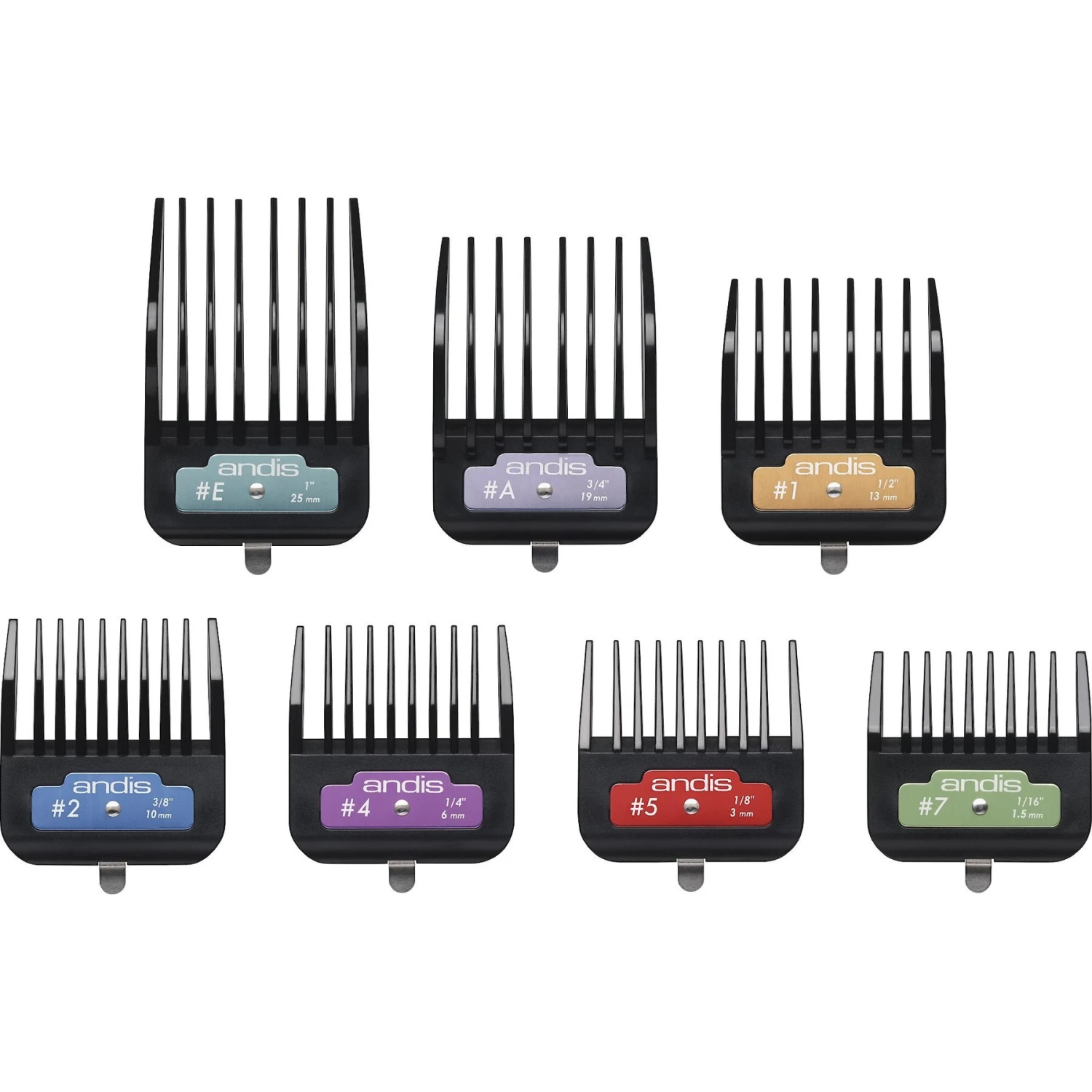 - Includes 7 AG Clip combs including 1/16-inch, ⅛-inch, ¼-inch, ⅜-inch, ½-inch, ¾-inch and 1-inch sizes.
