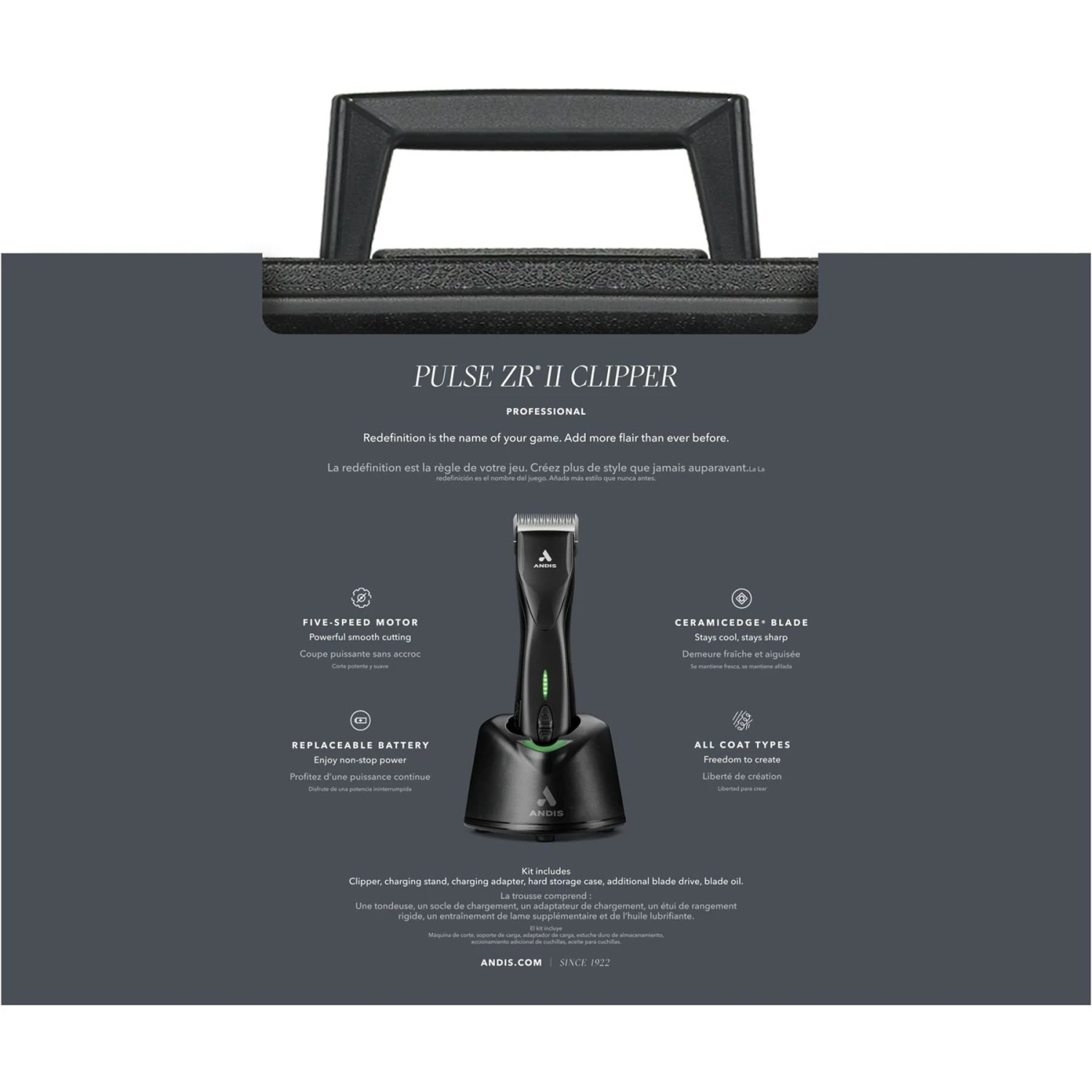 Andis Pulse ZR II 5-Speed Detachable Blade With Removable Lithium Ion Battery Dog Cordless Clipper Kit, Black