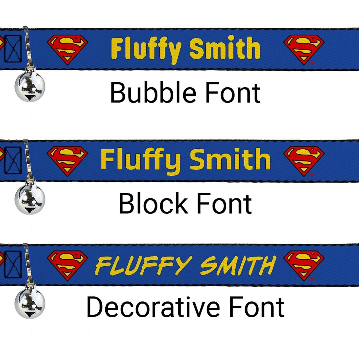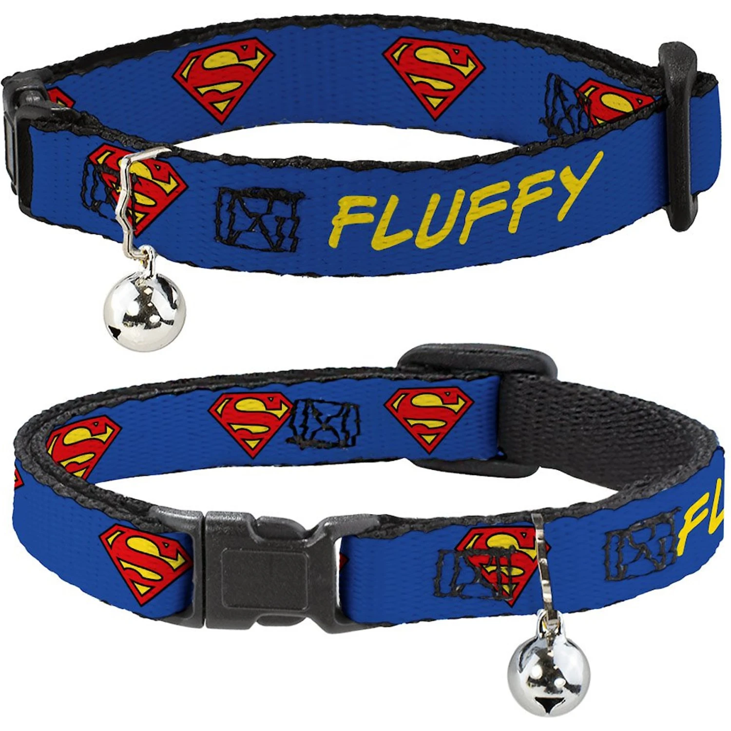 Buckle-Down DC Comics Superman Shield Personalized Breakaway Cat Collar With Bell