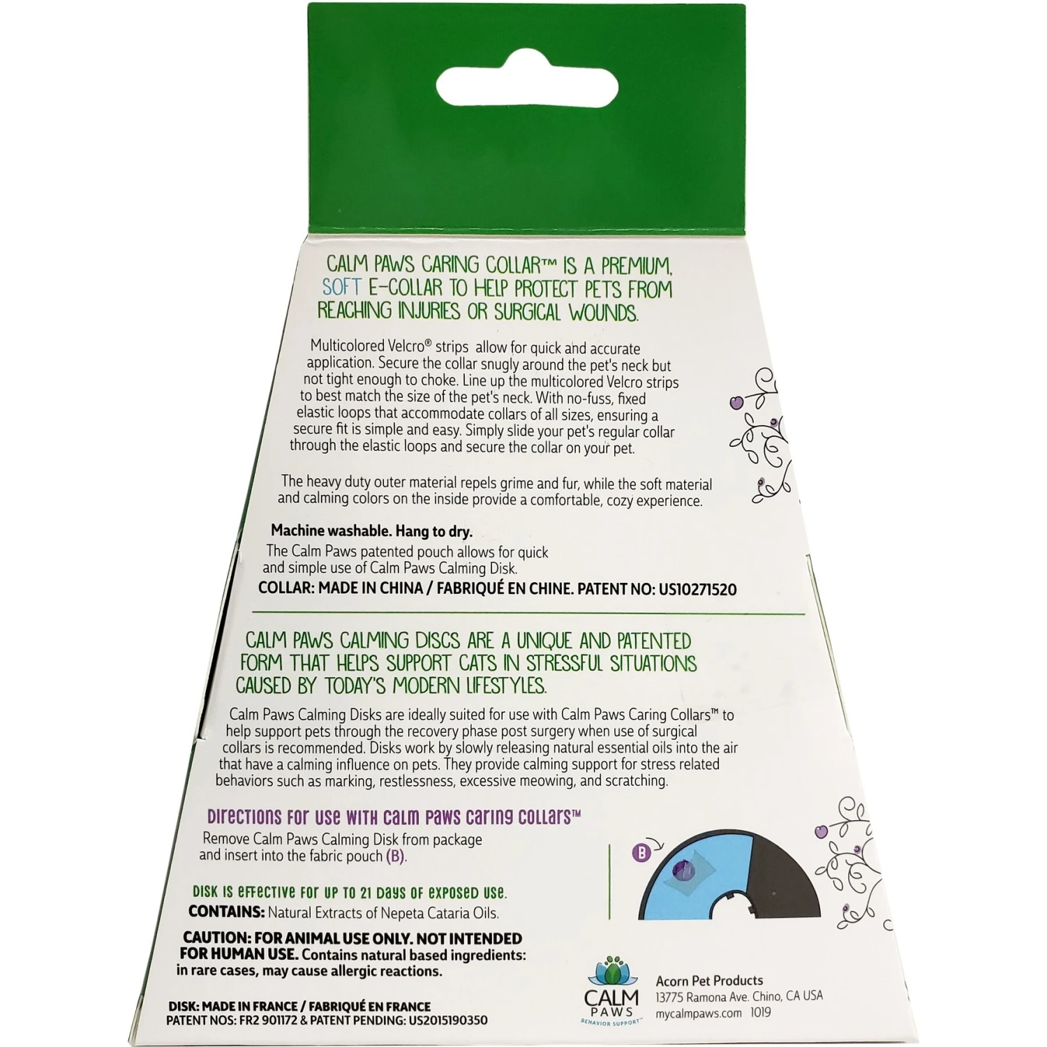 - The included calming disk releases a catmint essential oil fragrance to help soothe your cat during recovery.