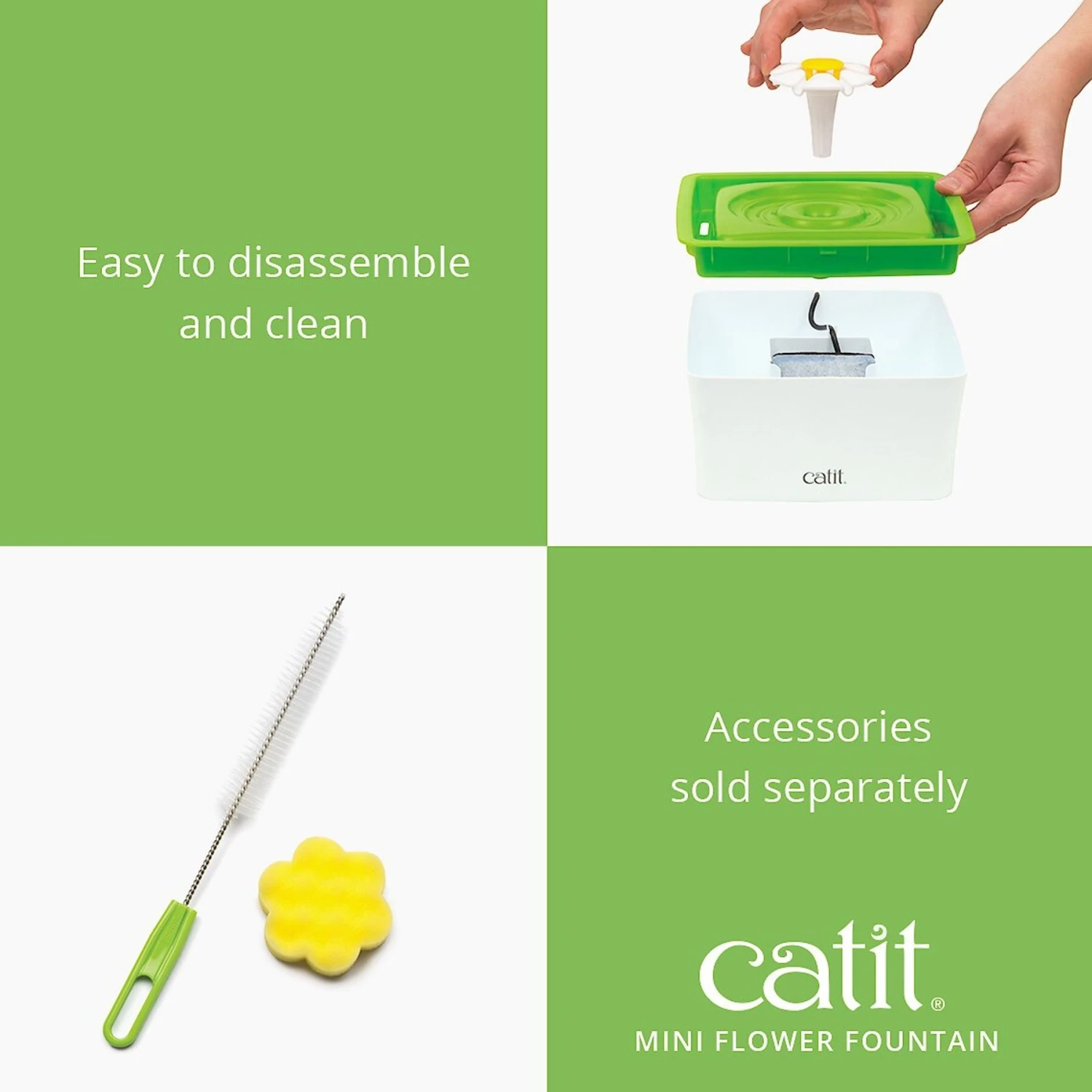 - Fountain is simple to assemble and disassemble for cleaning, so there’s less hassle for you and more irresistibly clean water for her.