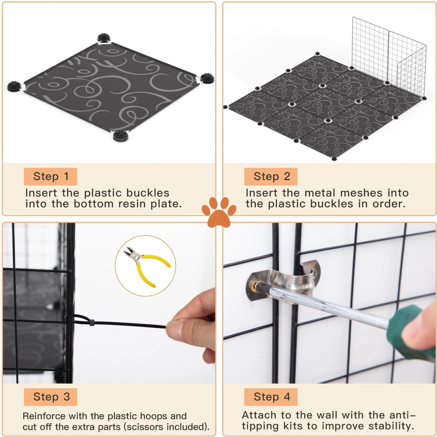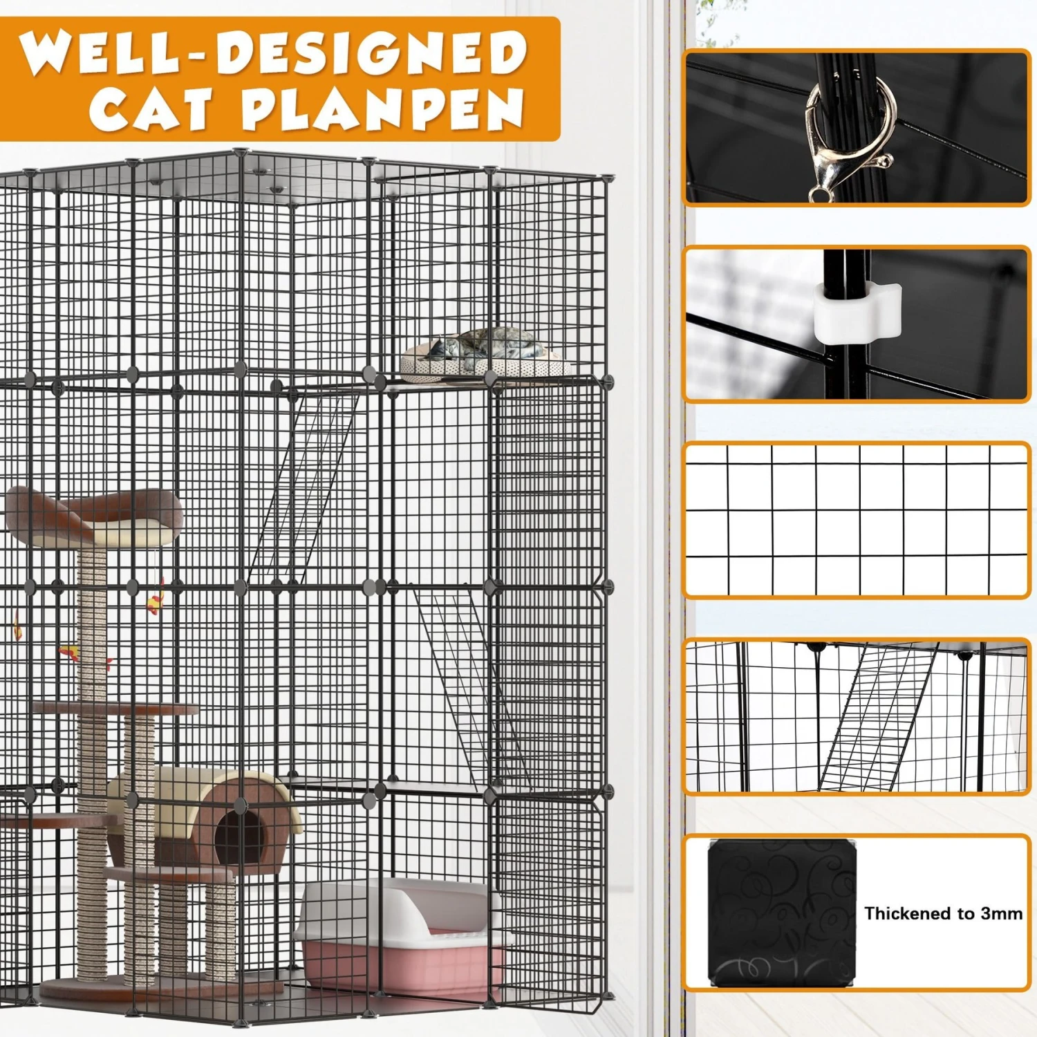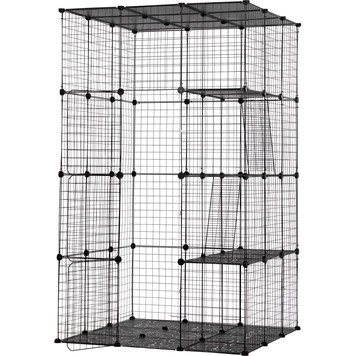 Coziwow DIY 4-Door Large Cat Cage Playpen, Black, 72-in