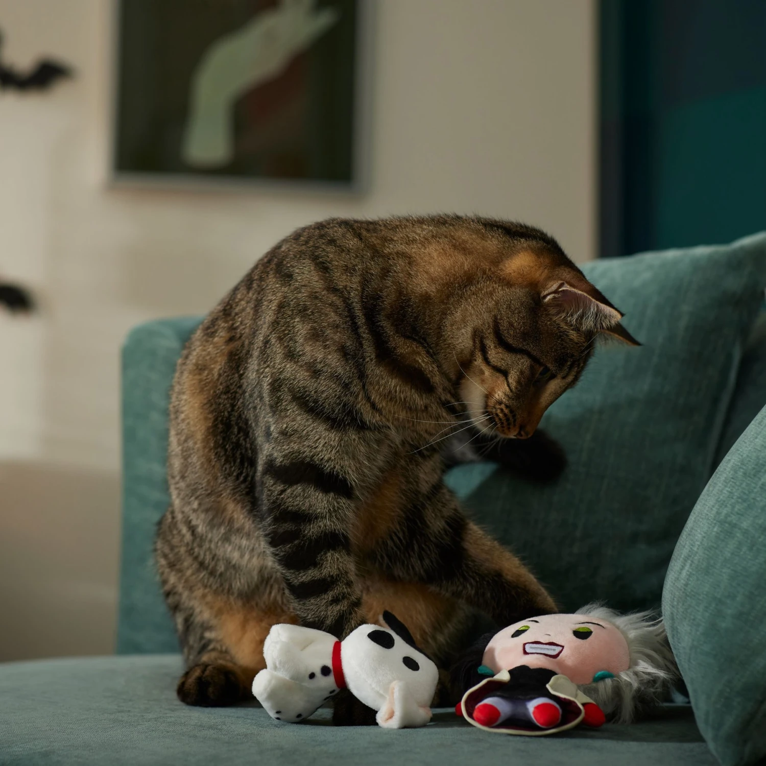 - Two plush catnip toys in one featuring Disney Villain Cruella de Vil and one of the Dalmatians—from The Disney Collection, available only at Chewy.