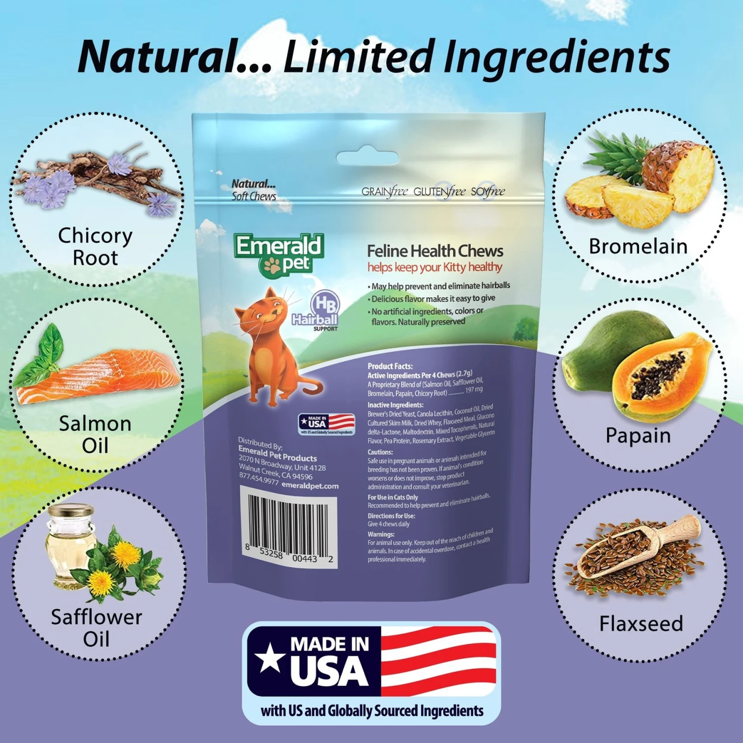 Emerald Pet Hairball Support Grain-Free Cat Soft Chews