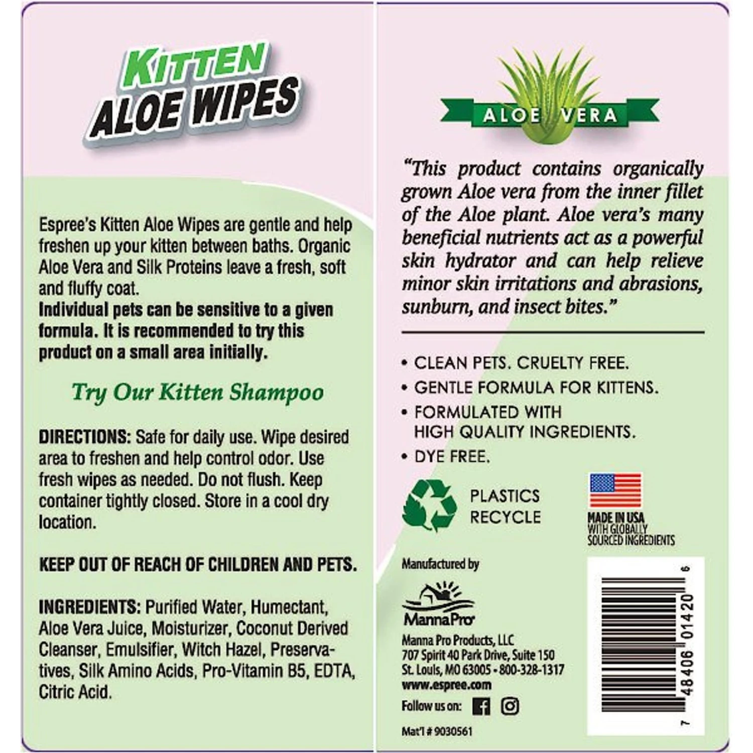 Espree Hypo-Allergenic Formula Aloe Vera Kitten Wipes