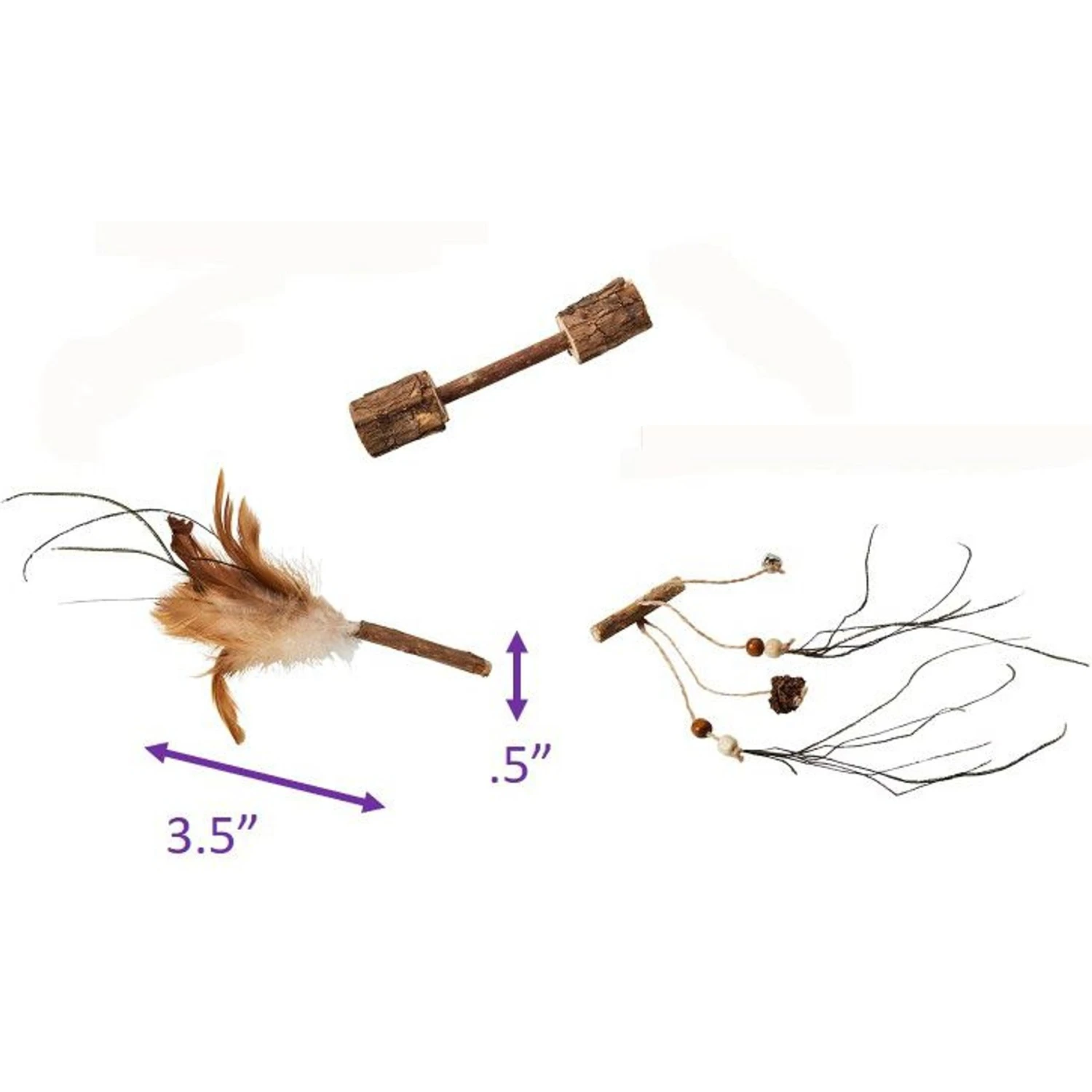 - Toy features sticks, feathers and strands to help capture your kitty’s attention.