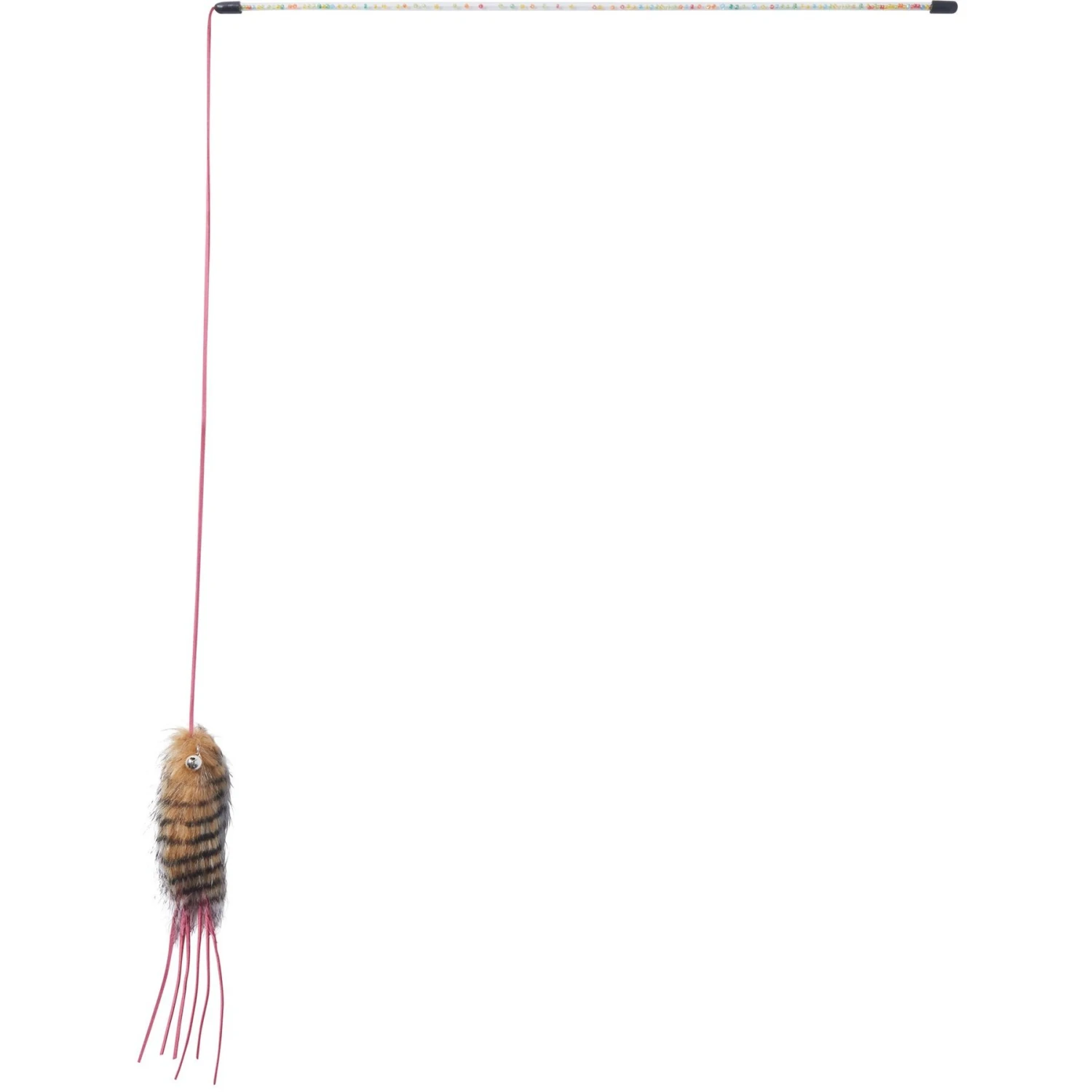 - Plush lures on the end entice cats to play and chew.