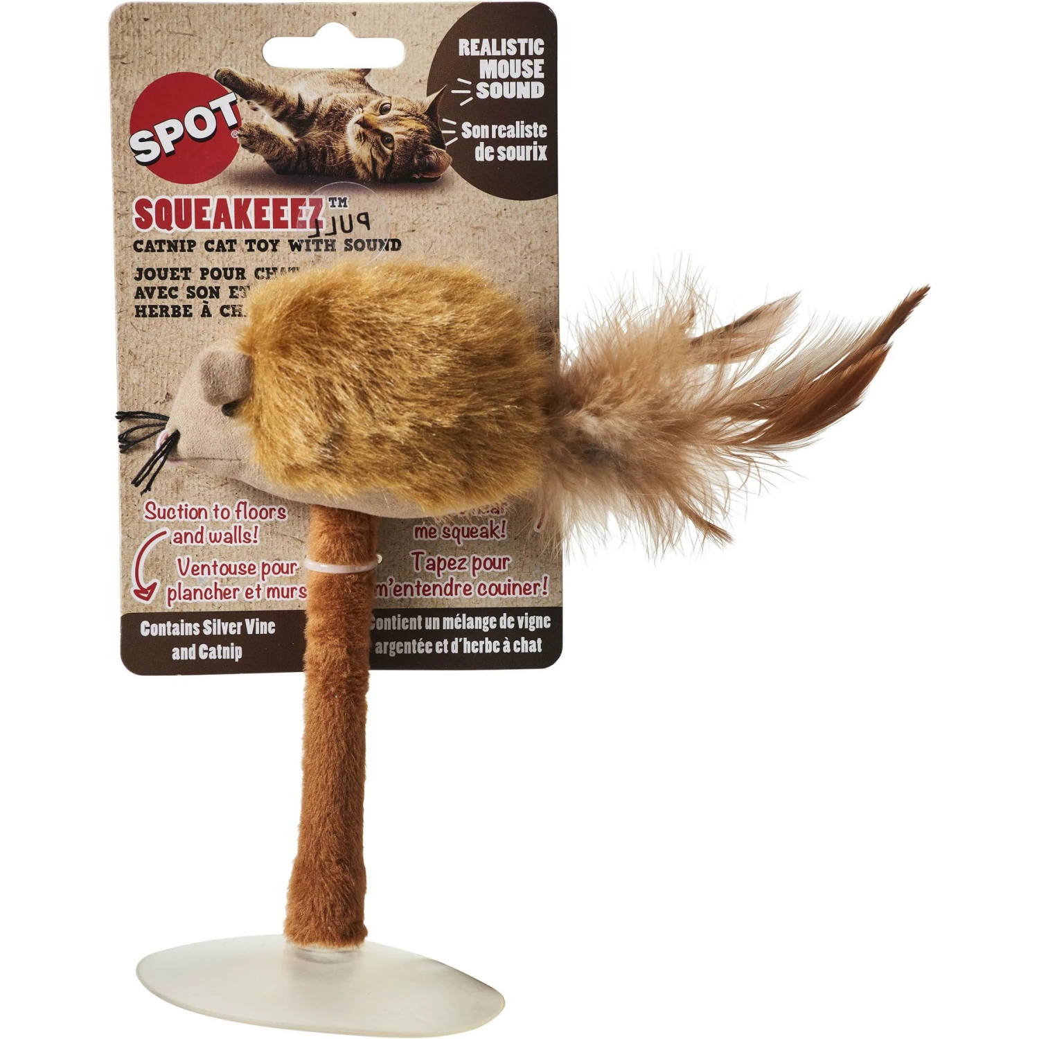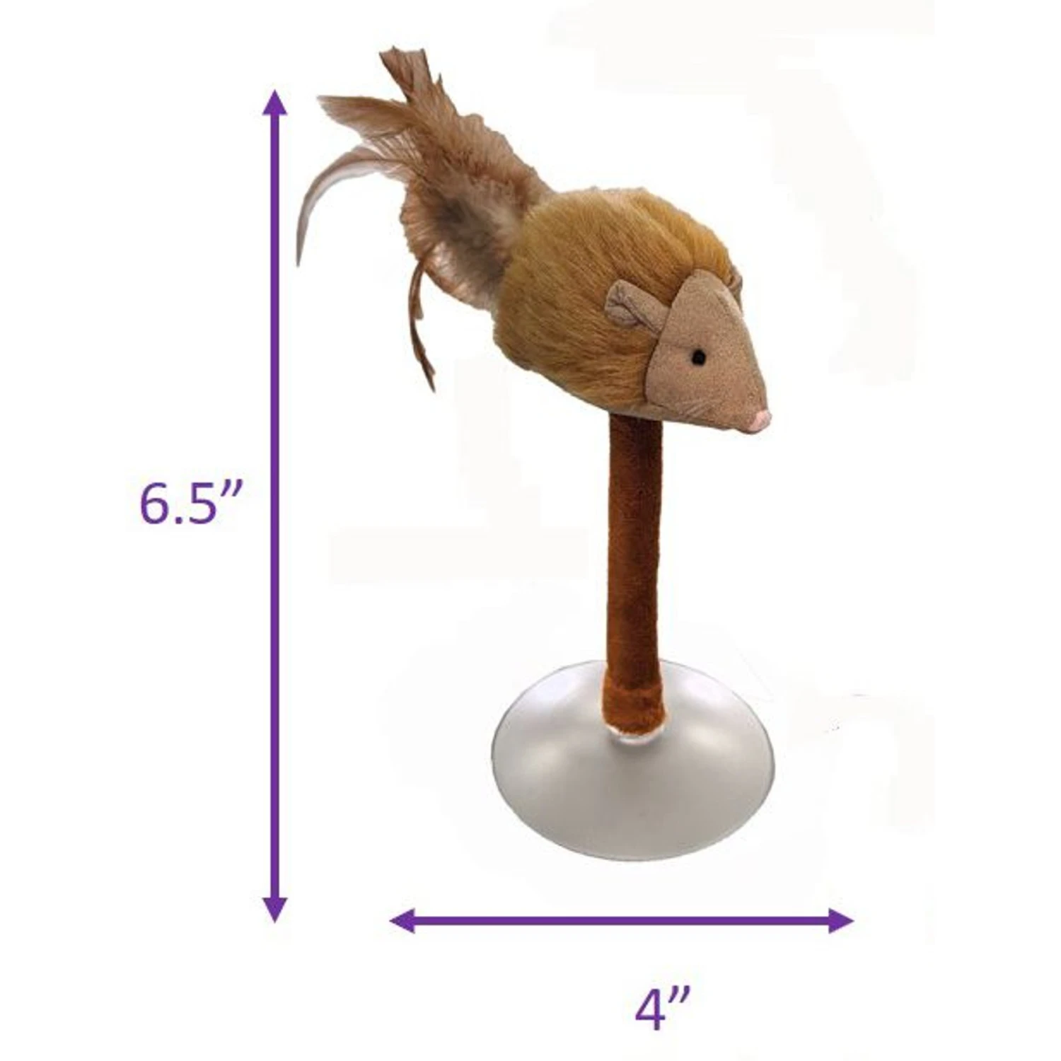 - Realistic faux fur plush mouse with suction cup base looks and sounds like the real deal!