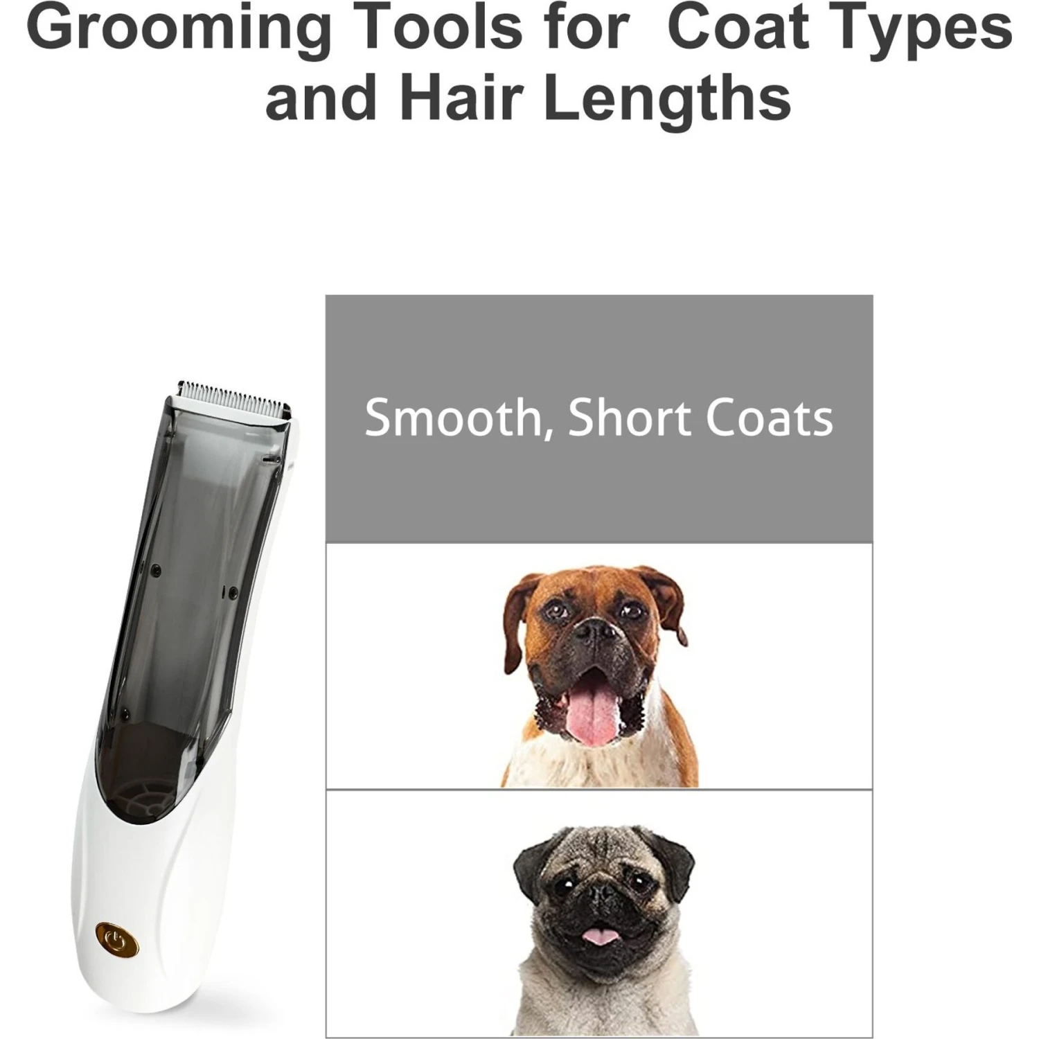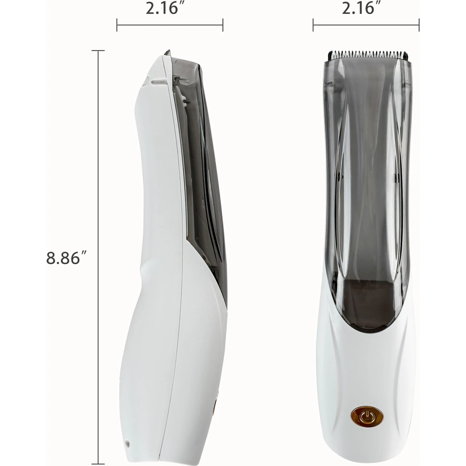 - Suction function collects pet hair into a container while you trim to keep your home clean.