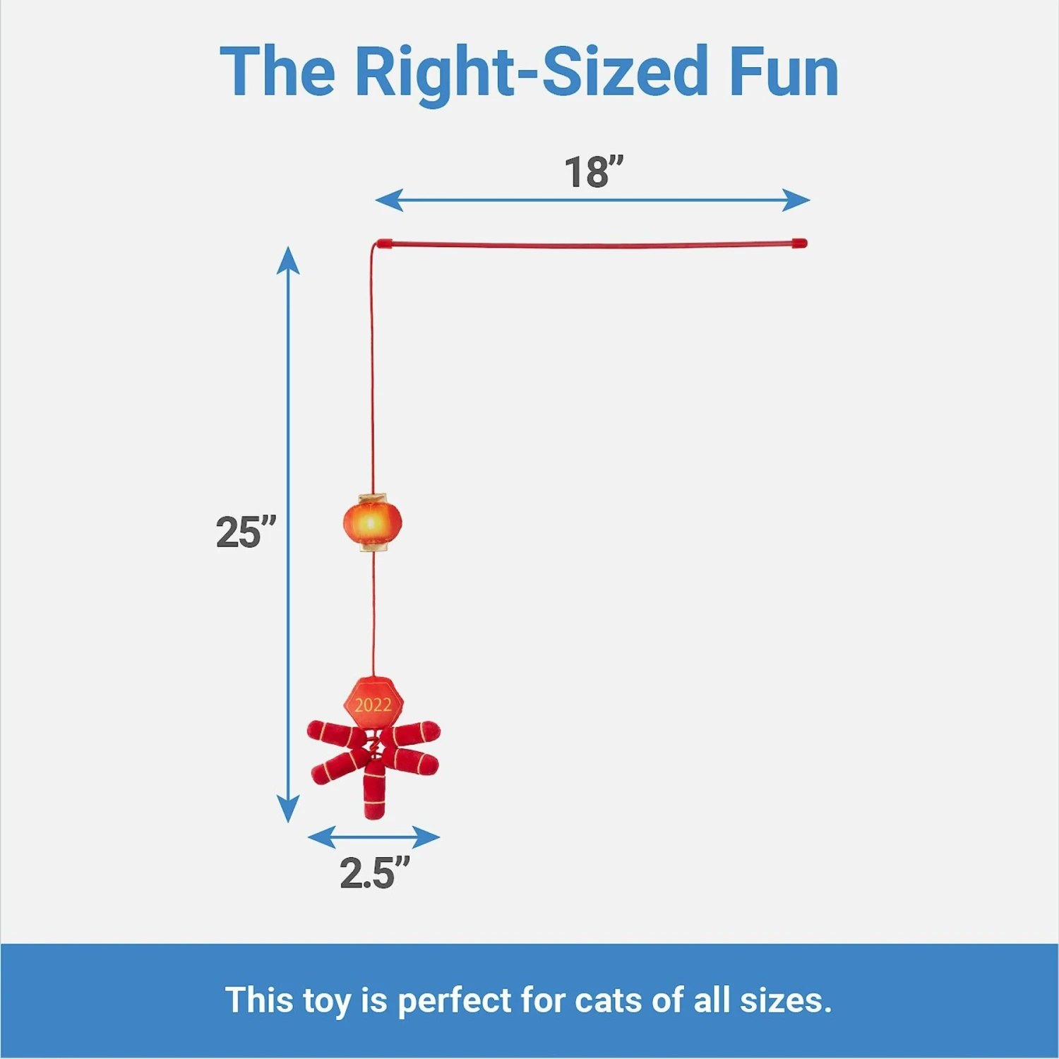 - Traditional Lunar New Year wand teaser toy features a lantern and firecrackers to celebrate with kitty.