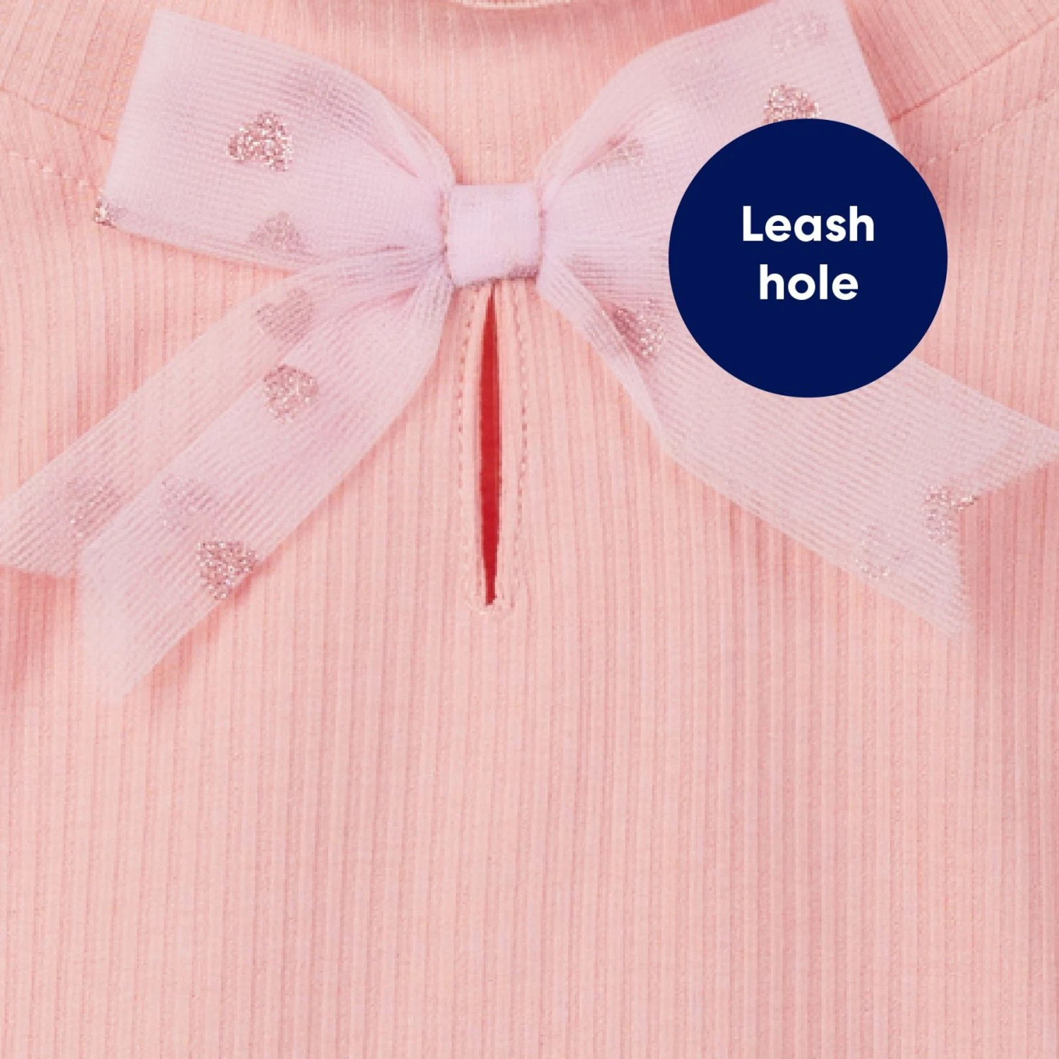 - A leash hole just below the collar bow allows for quick bathroom breaks or strolling around town so they can strut their stuff.