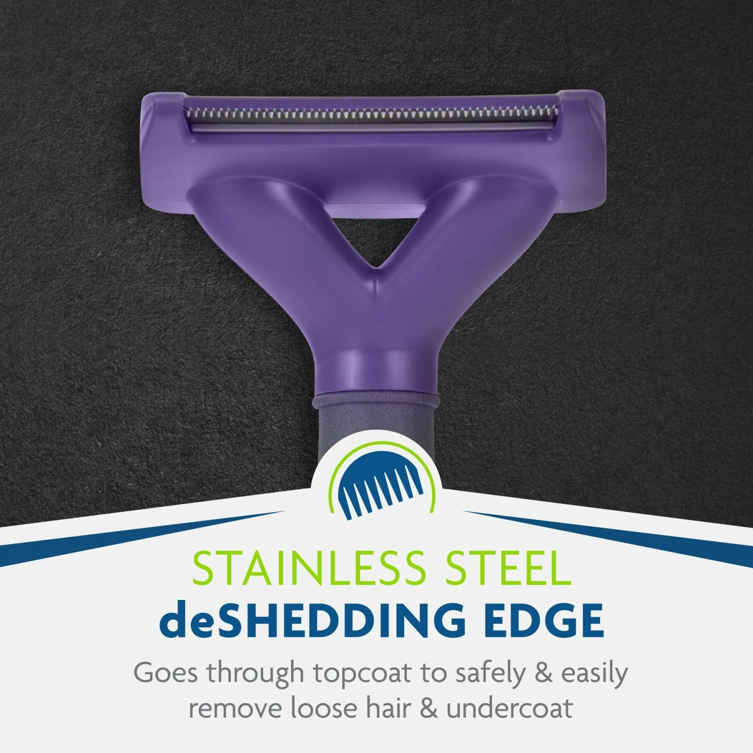 - Features a stainless-steel edge that reaches beneath the short topcoat, removing undercoat and loose hair.