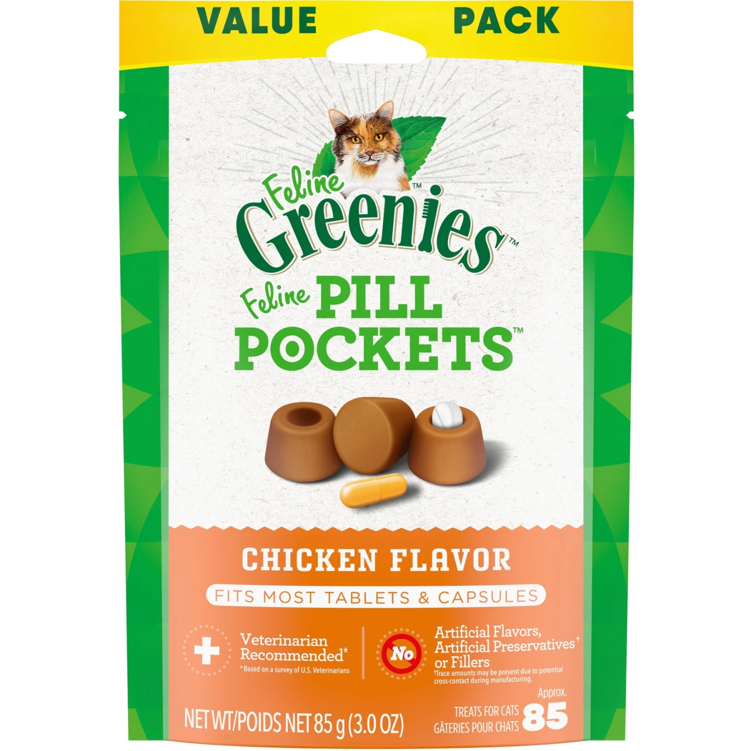 Greenies Pill Pockets Feline Chicken Flavor Natural Soft Adult Cat Treats