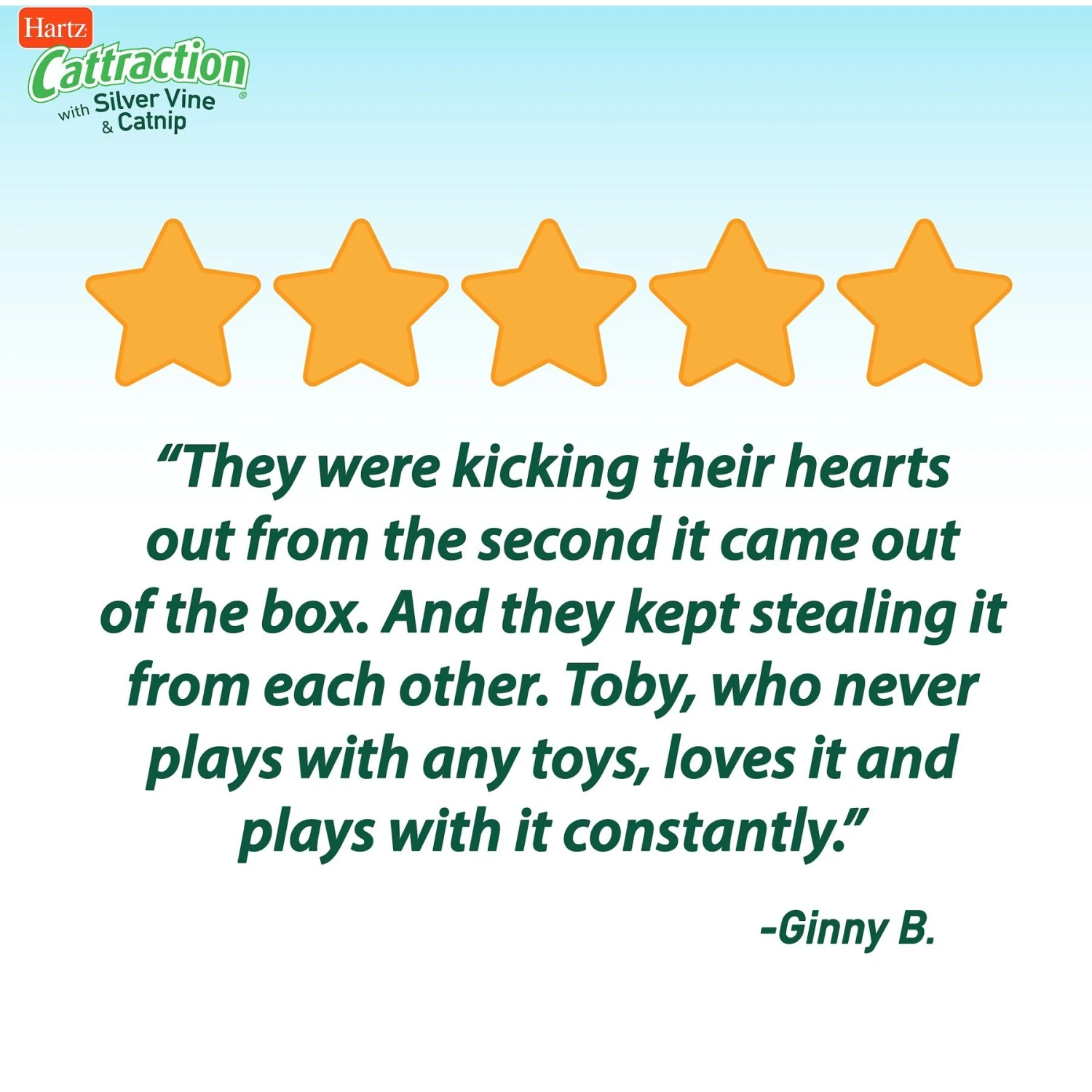 - Ball filled with a potent combination of silver vine and catnip attractants.