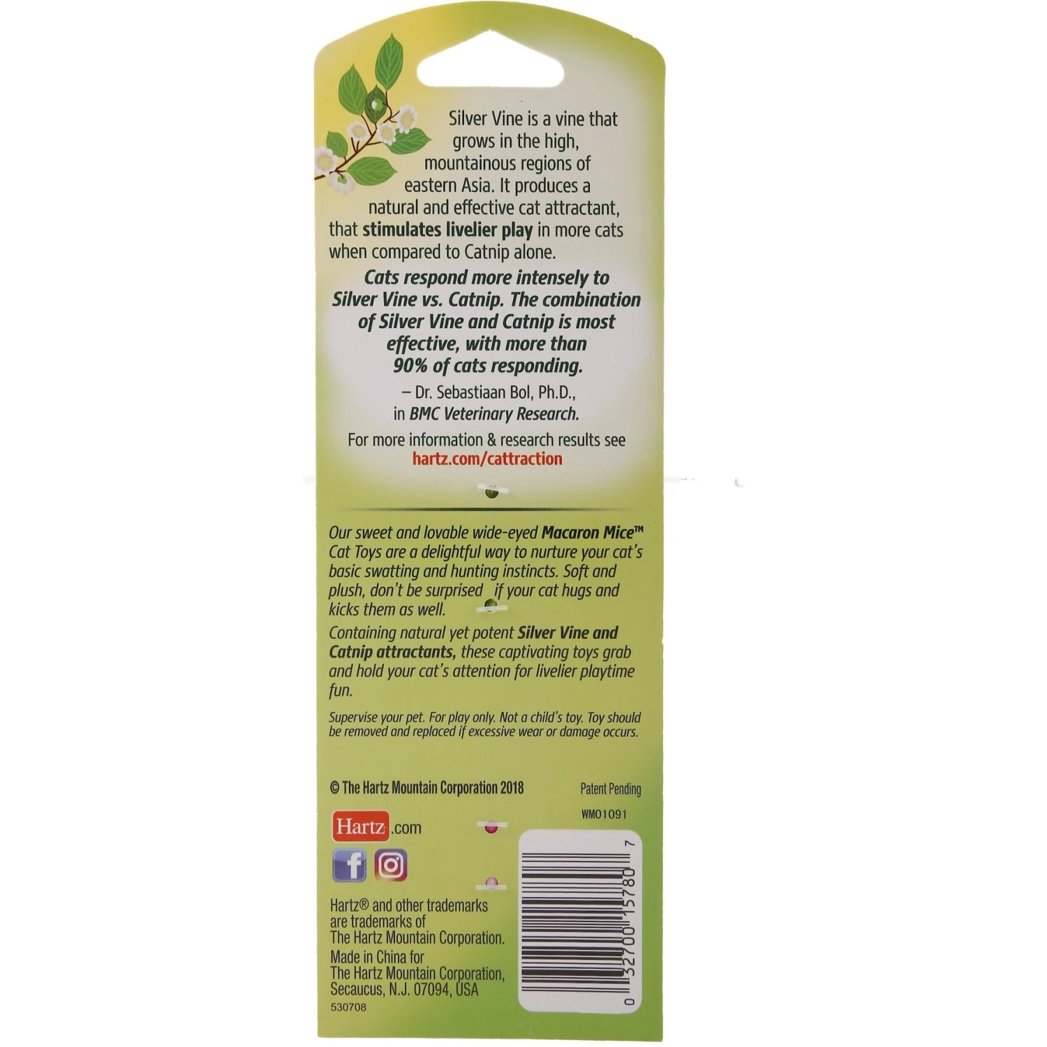 Hartz Cattraction Silver Vine & Catnip Plush Macaron Mice Cat Toy, 2 Count