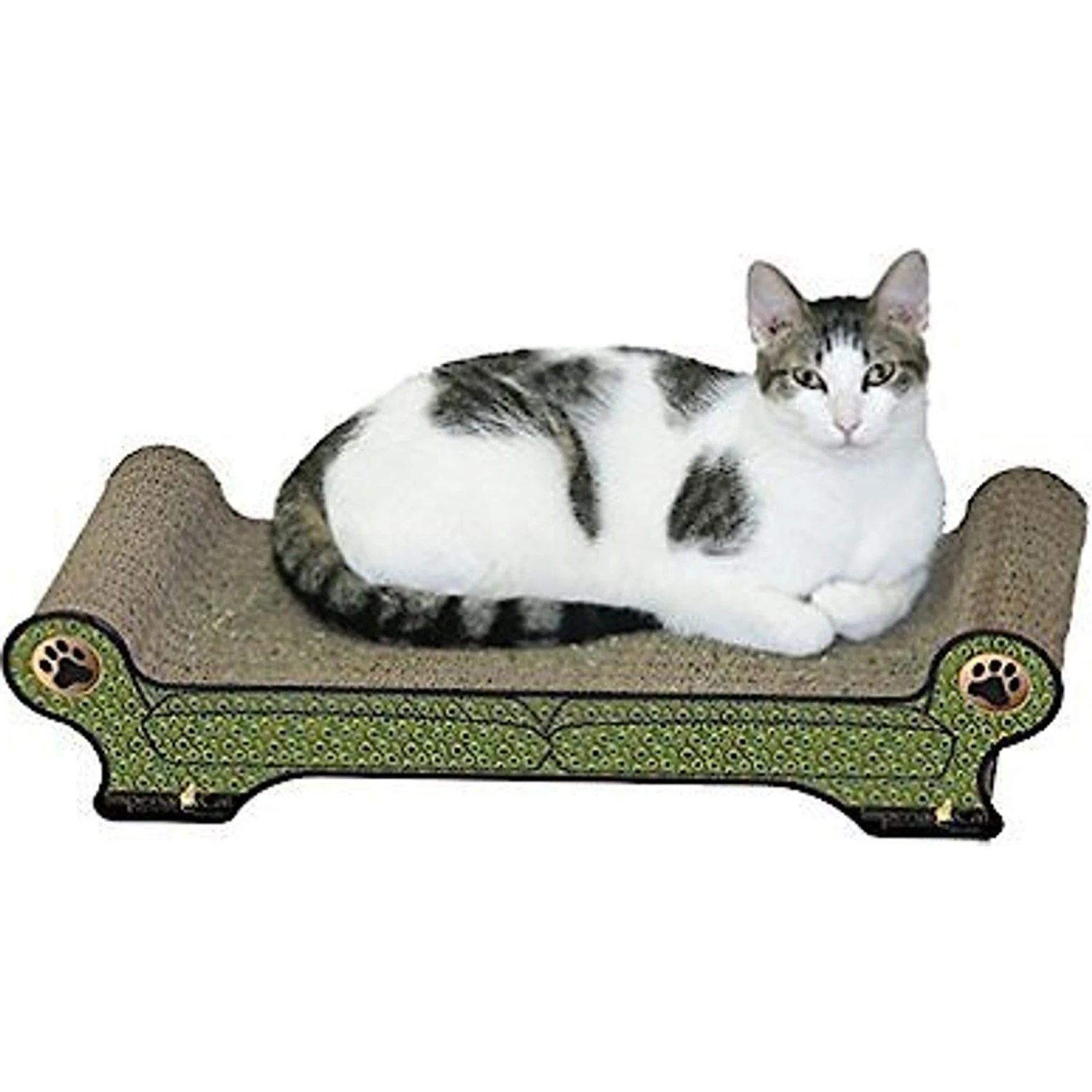 - Unique scratching pad is shaped like a long, low couch and also doubles as a cozy cat lounger.