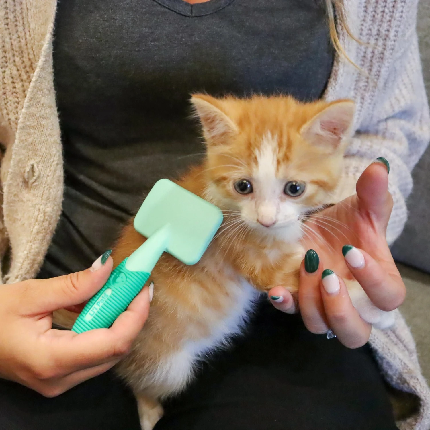 - Plastic tips on each bristle prevent irritation of your kitten’s soft, sensitive skin.