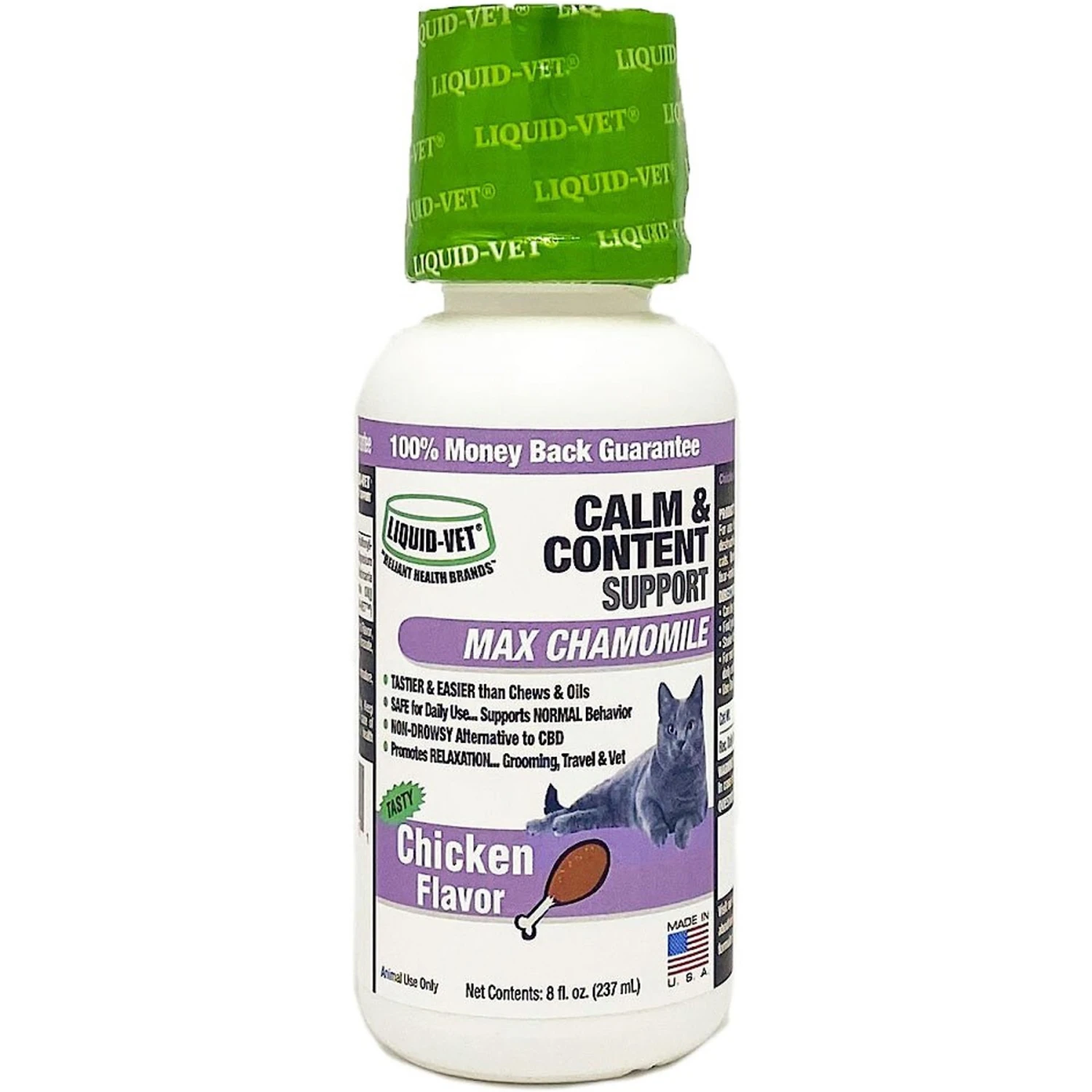Liquid-Vet Calm & Content Support Chicken Flavor Liquid Calming Supplement For Cats, 8-oz Bottle