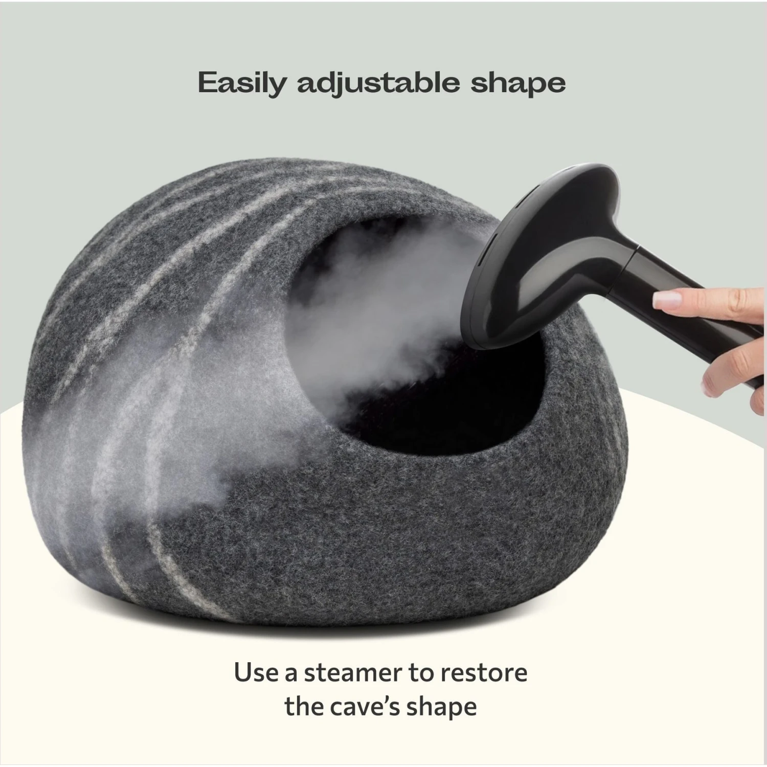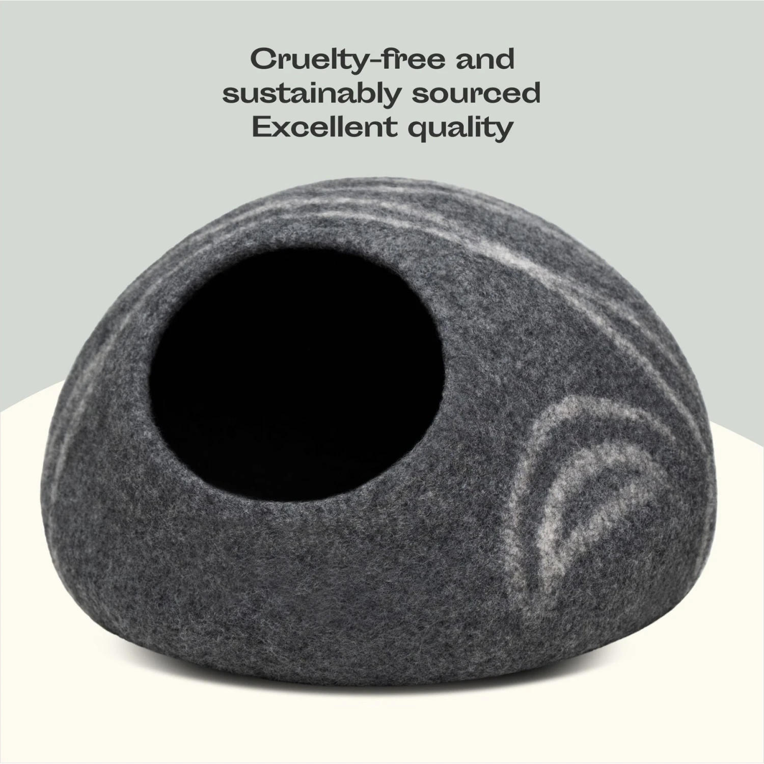- Made with a traditional wet-felting technique that transforms the wool yarn into a dense fabric that can stand up to kitty’s claws.