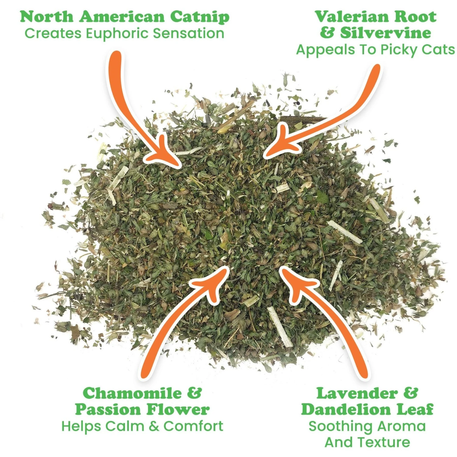 - Crafted with 7 herbs—passion flower, lavender, dandelion leaf, chamomile, valerian root, silvervine and catnip.