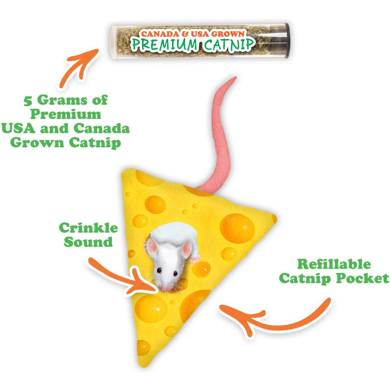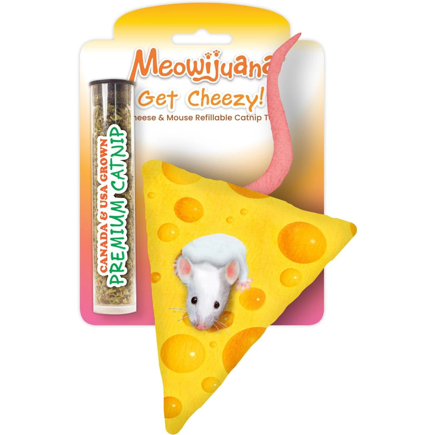 Meowijuana Get Cheesy Mouse & Cheese Refillable Plush Cat Toy With Catnip