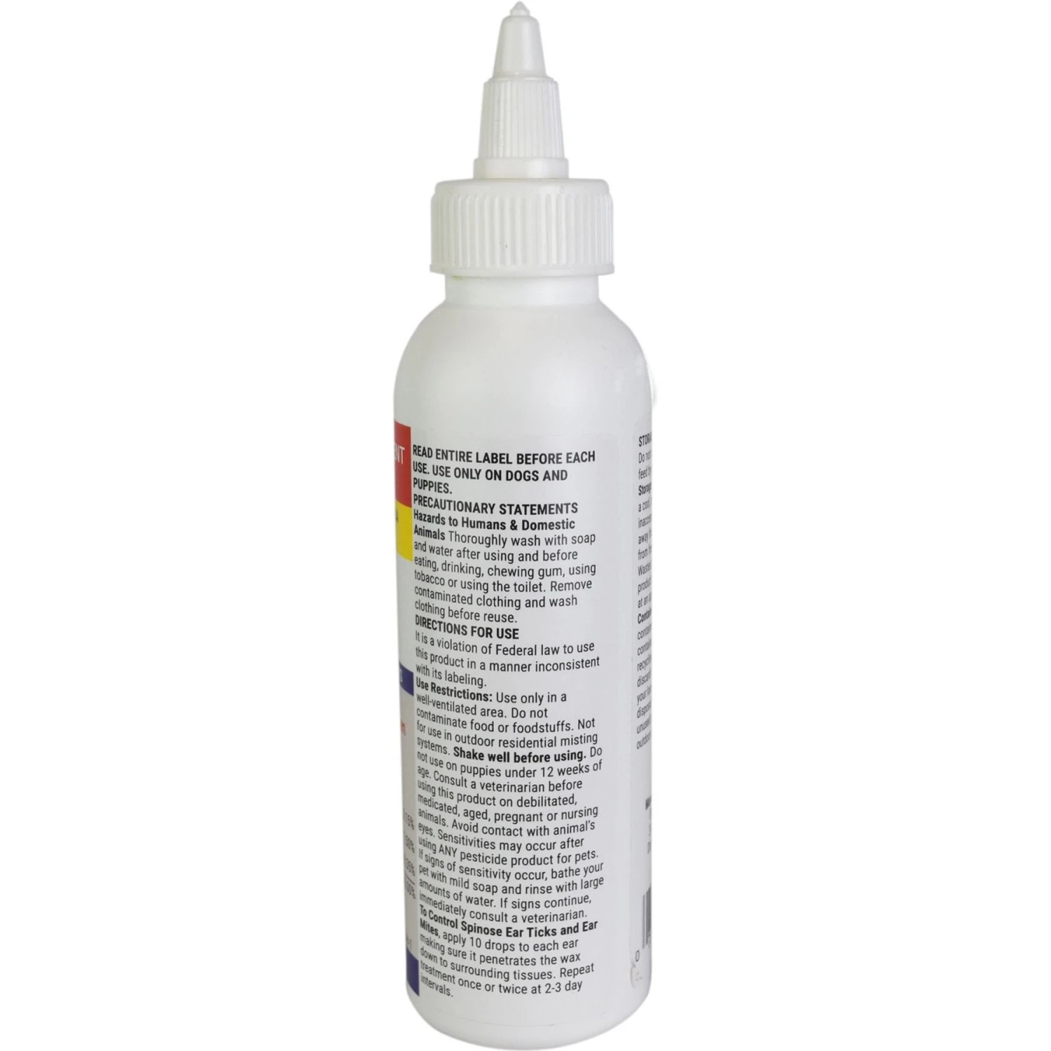 - Pyrethrin-based liquid medication protects your pup from spinose ear ticks and ear mites.
