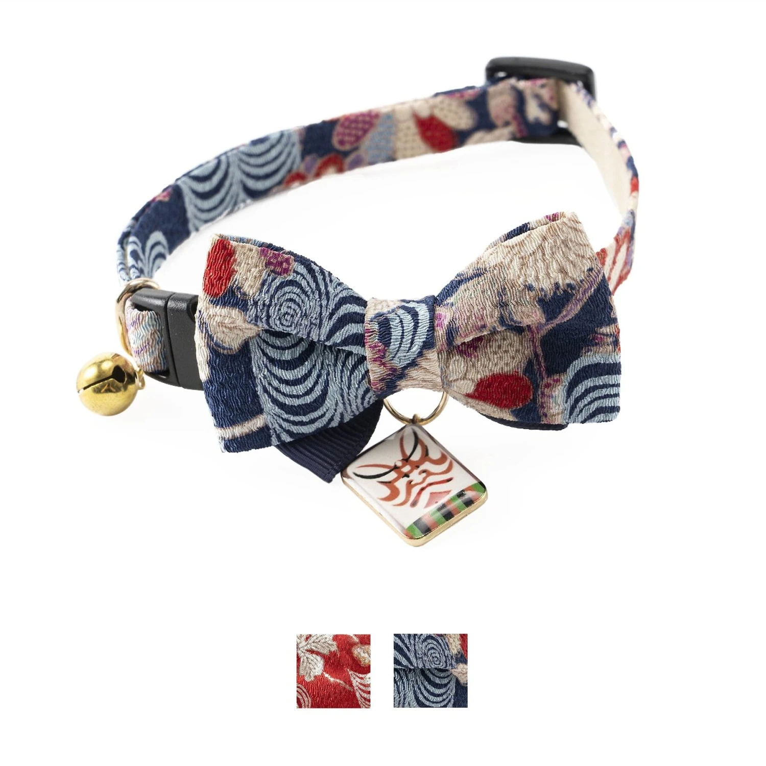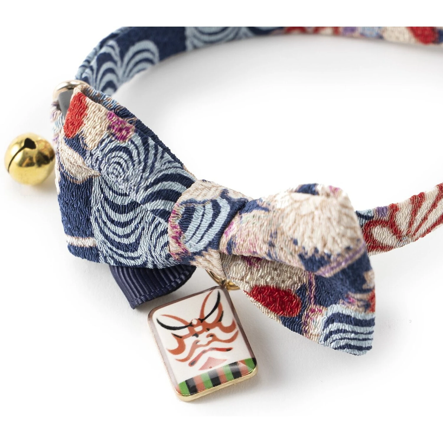 Necoichi Kabuki Charm Bow Tie Cotton Breakaway Cat Collar With Bell