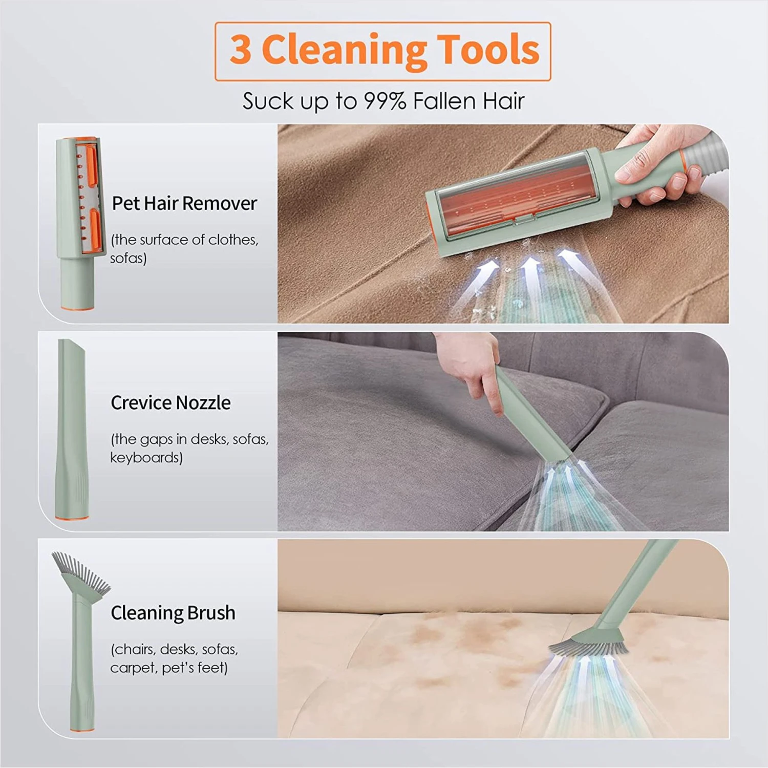 - Provides super suction and picks up 99% of pet hair and dust.