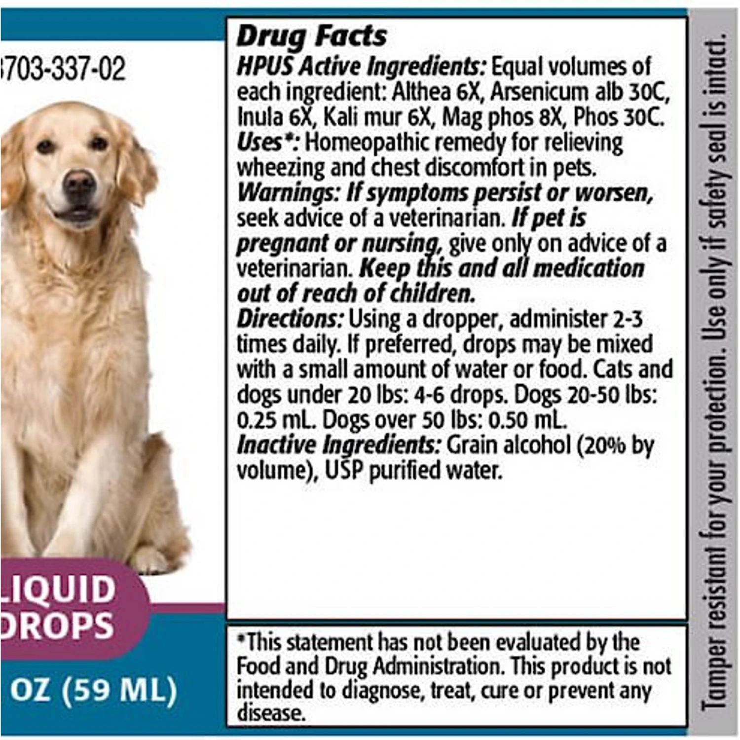 - This all-natural homeopathic medicine is designed to remedy symptoms of asthma and chest discomfort in your cat or dog.