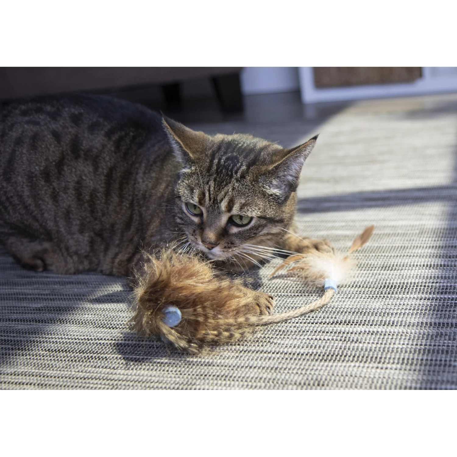 - Prey-mimicking wooly faux fur and jute tail to stimulate your cat’s natural hunting instincts.