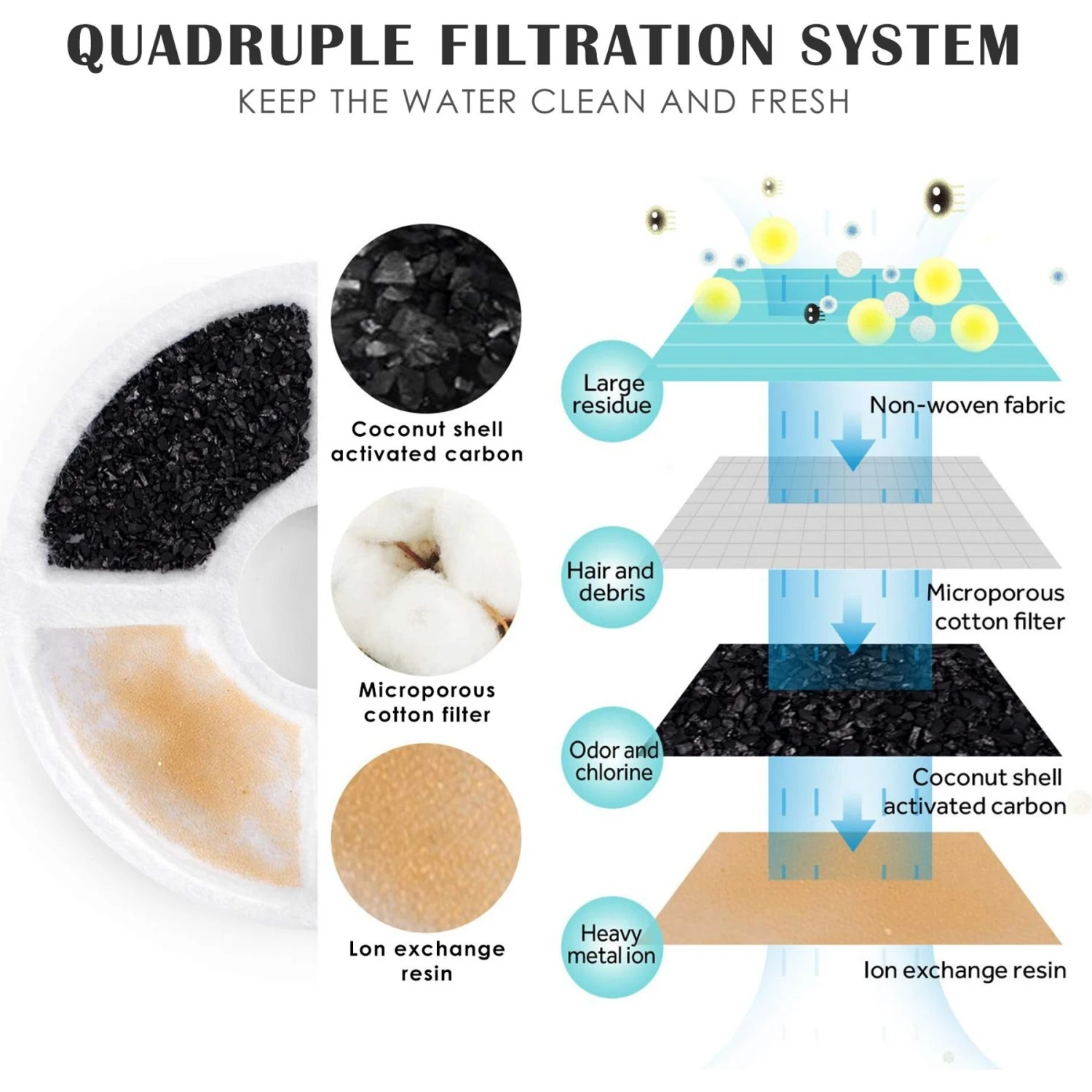 - Features activated carbon, yellow high-density ion exchange resin, and cotton layer filters for a complete filtration experience.