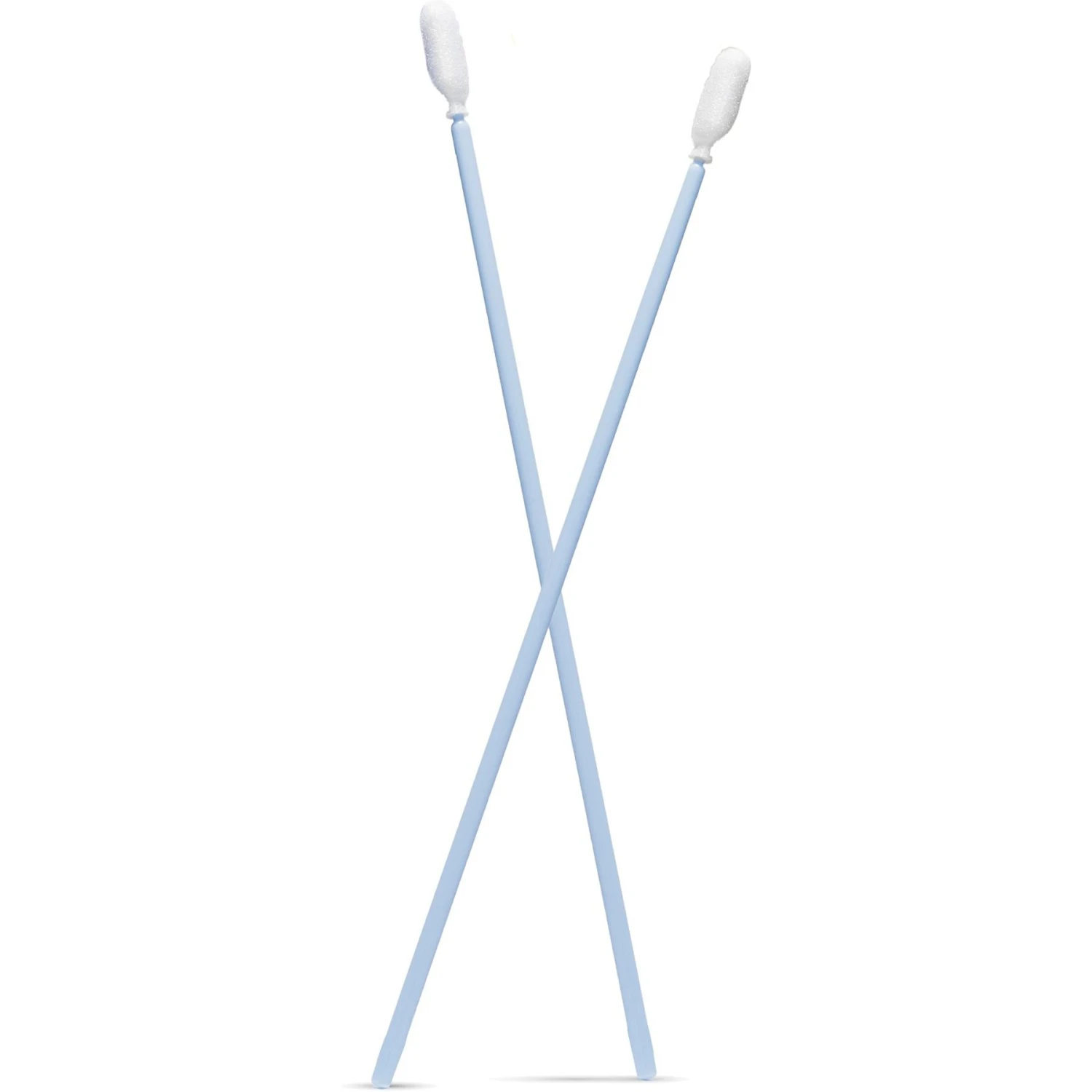 - The long wand swabs hard-to-reach areas of the mouth.