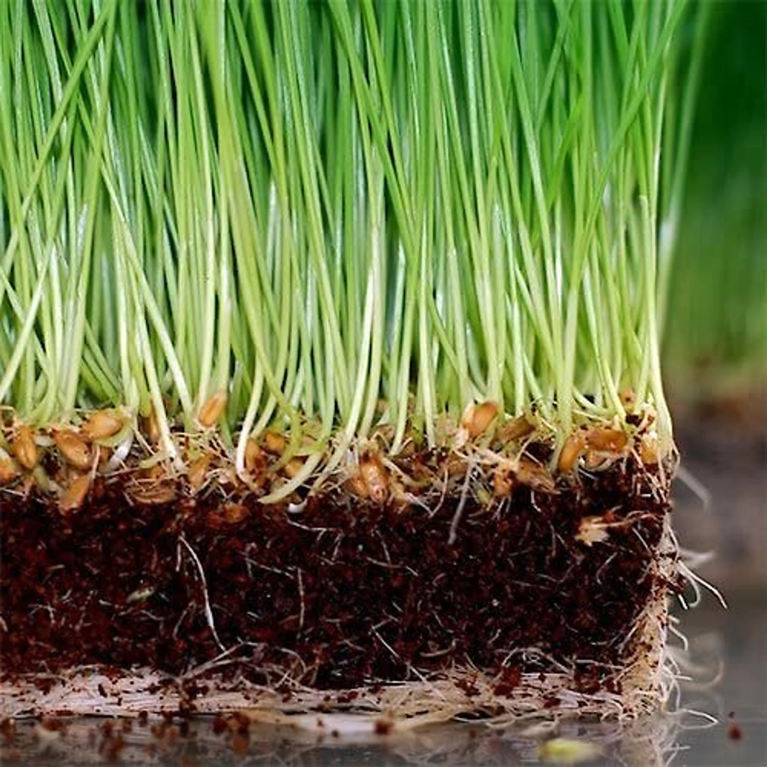 - Seeds contain wheat, oats, rye and barley, giving the grass a delicious, earthy flavor.