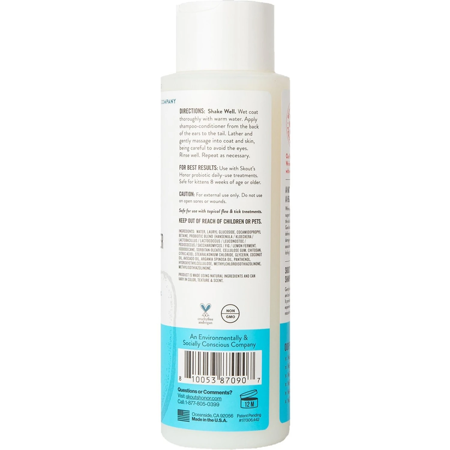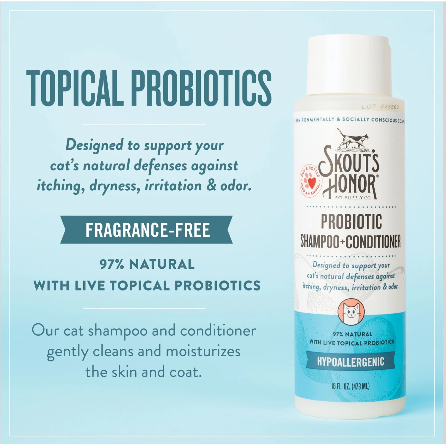 Skout’s Honor Probiotic Fragrance Free Cat Shampoo & Conditioner, 16-oz Bottle