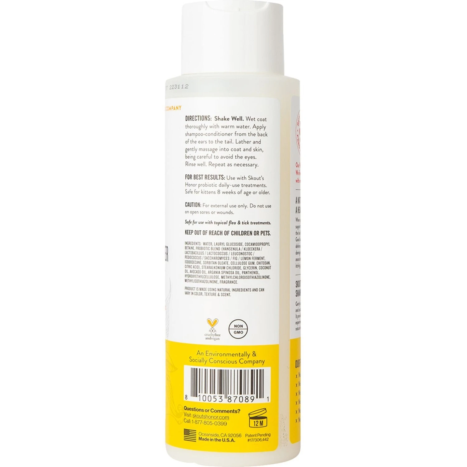 Skout’s Honor Probiotic Honeysuckle Cat Shampoo & Conditioner, 16-oz Bottle