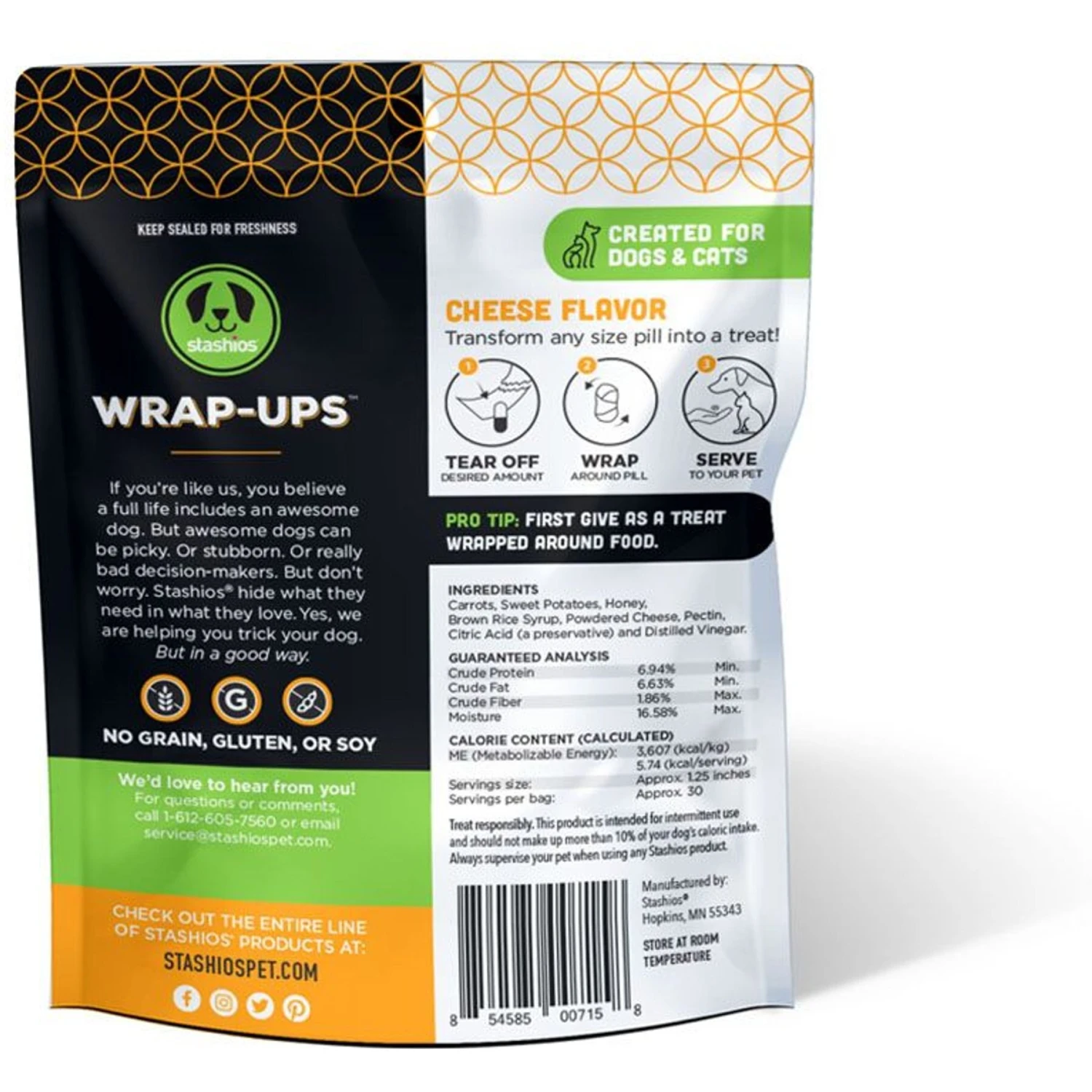 Stashios Wrap-Ups Cheese Pill Wrapper Dog & Cat Treat, 30 Count