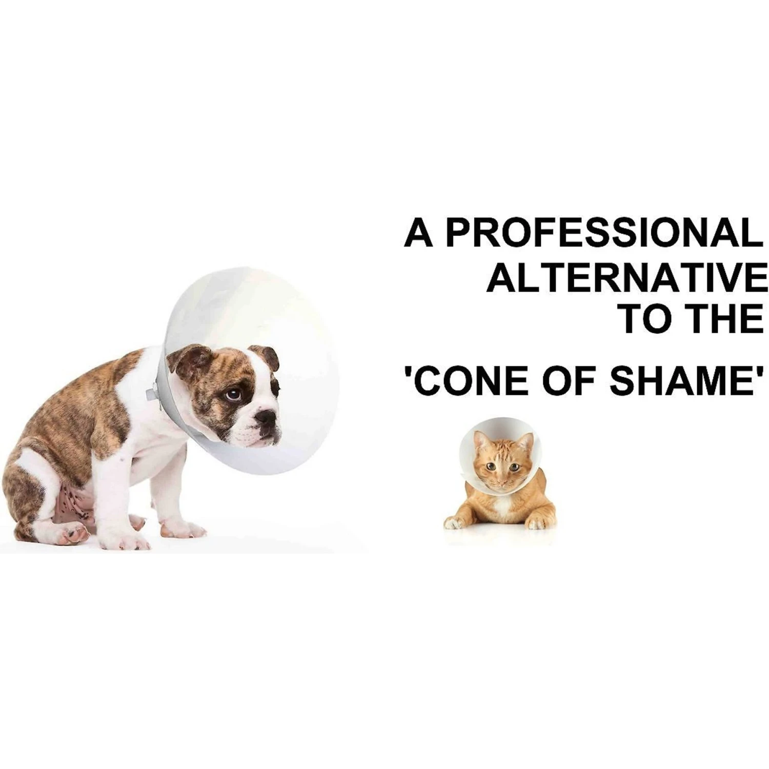 - Comfortable, stress-reducing alternative to the traditional cone is recommended by vets.