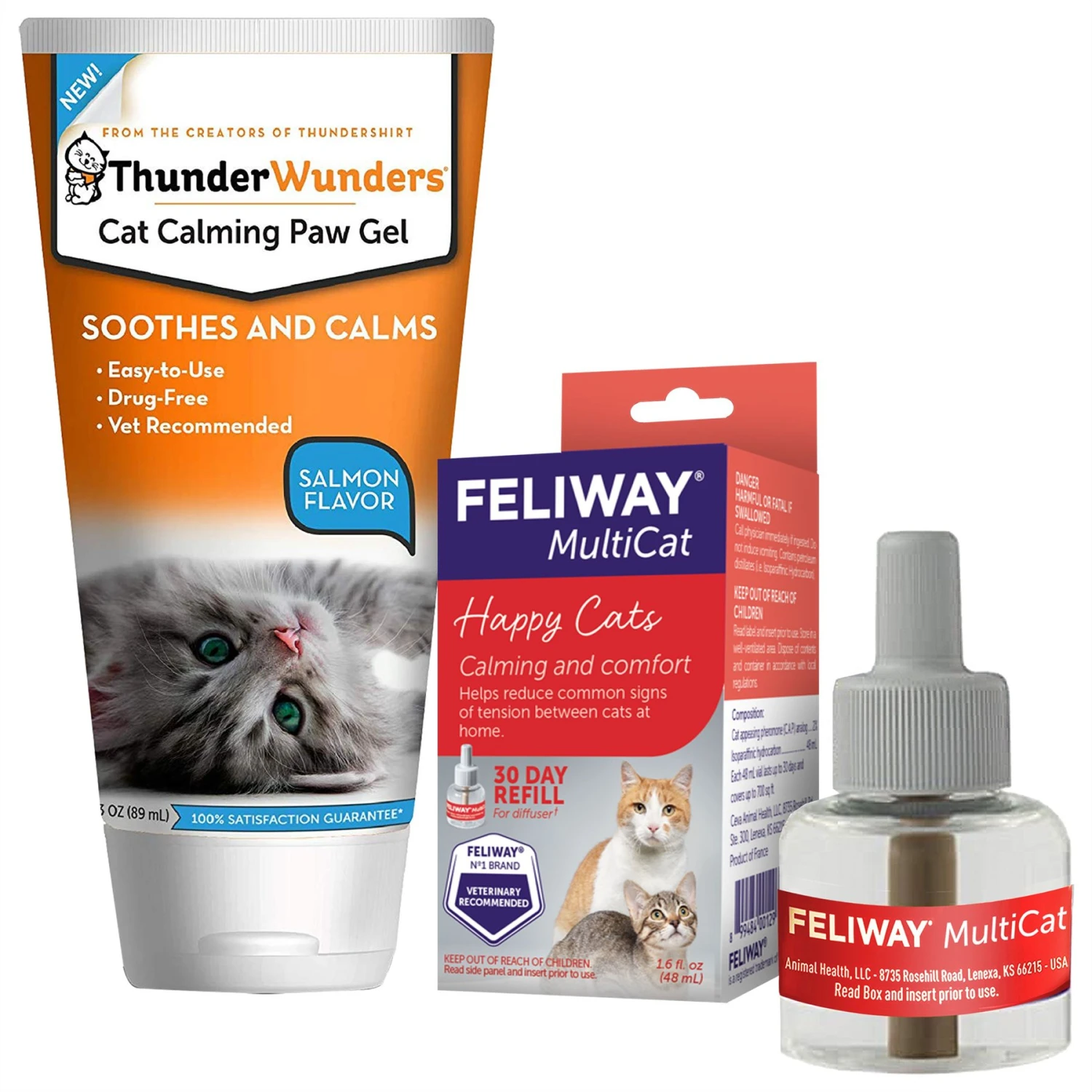 ThunderWunders Calming Cat Paw Gel & Feliway MultiCat Calming Diffuser Refill For Cats, 30 Day