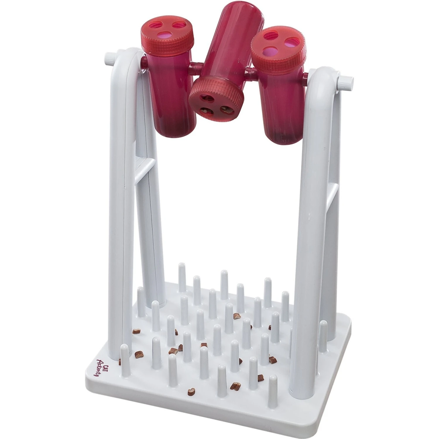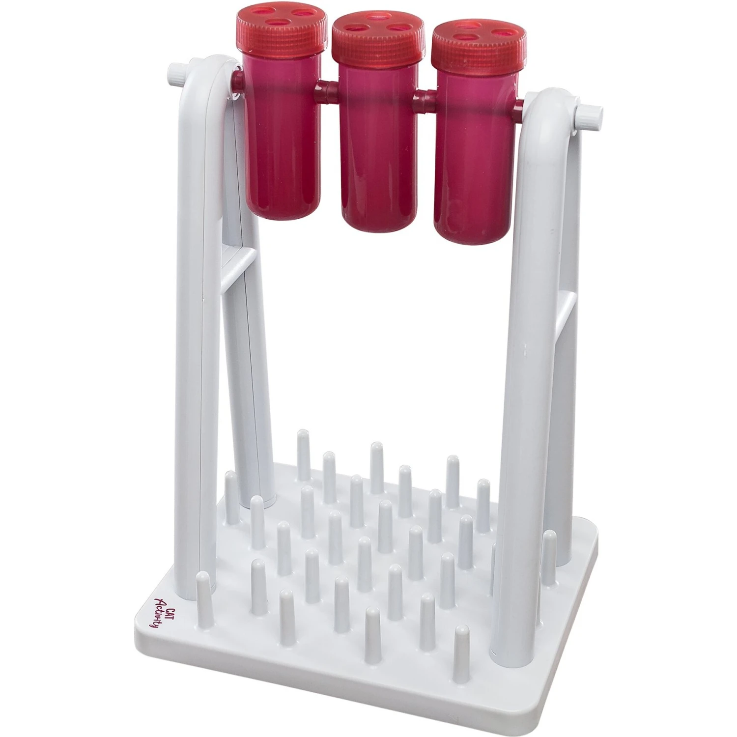 - Cats must flip and balance beakers upside down to release the treats.