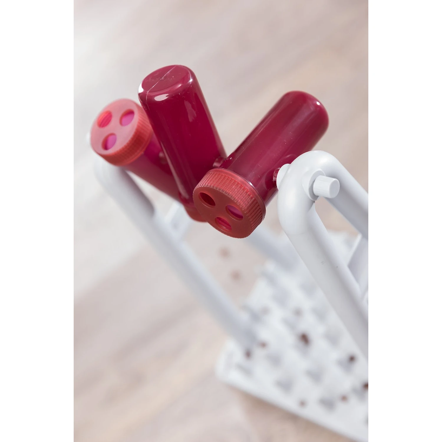 - Includes base, frame, three beakers, two sets of patterned lids (6 total), and instructions with tips.