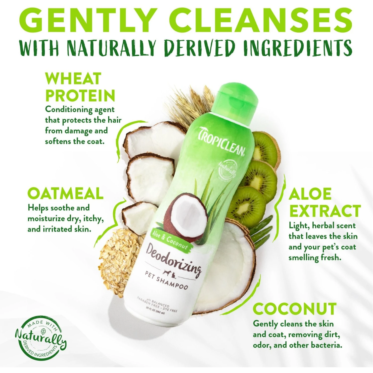 - For a tropical experience, pair this deodorizing shampoo with TropiClean’s Moisturizing Conditioner and Deodorizing Spray (each sold separately).