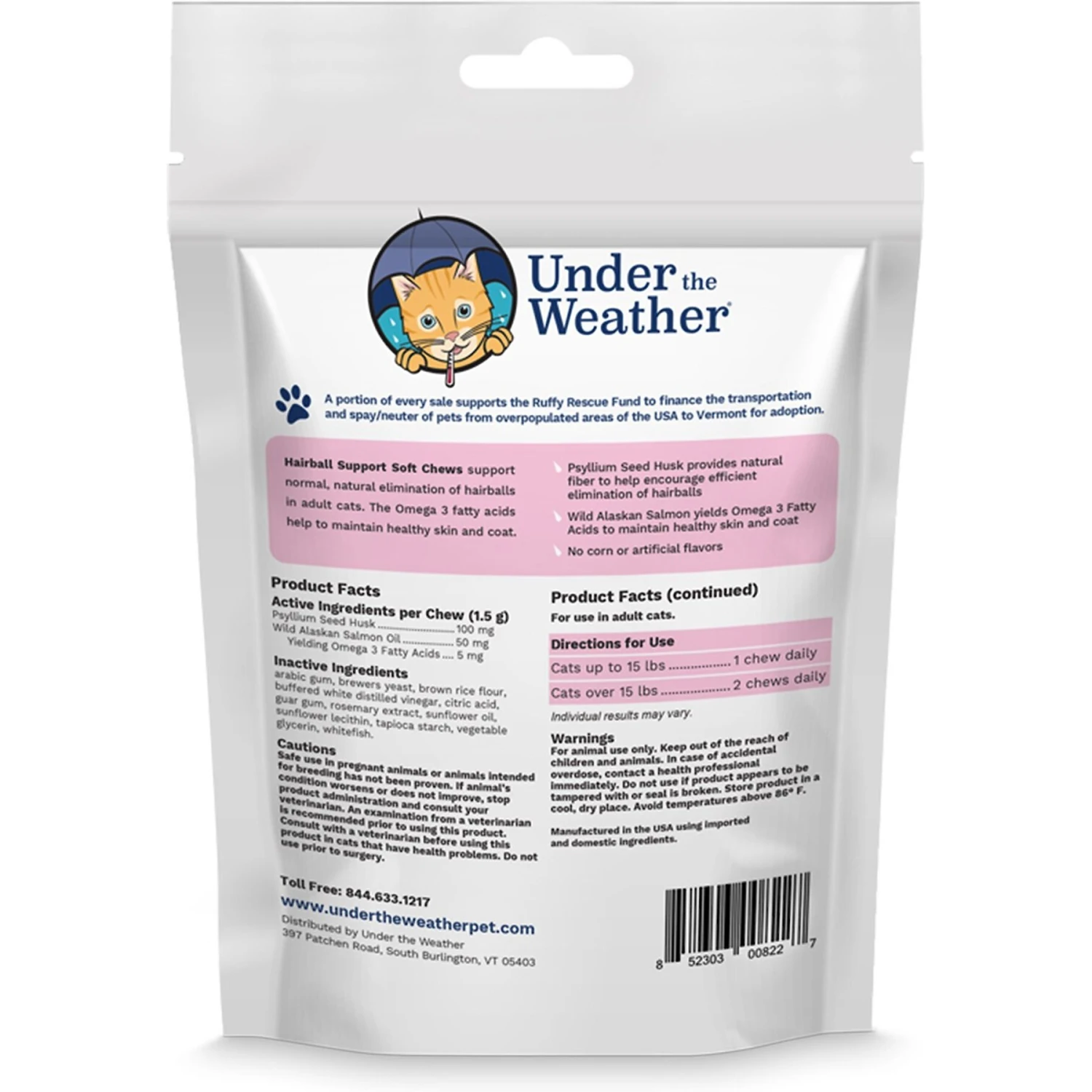 Under The Weather Hairball Support Soft Chews Cat Supplement
