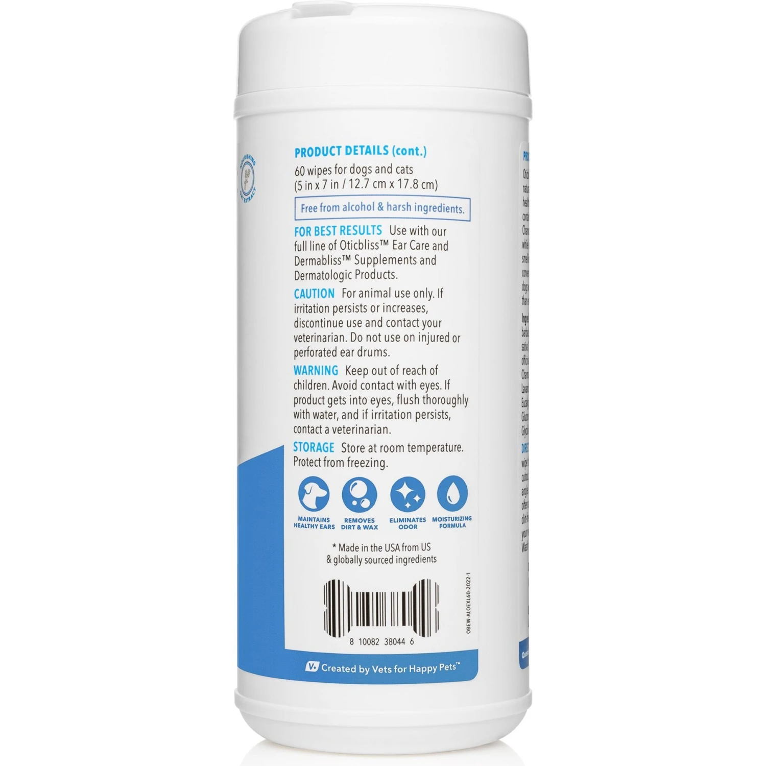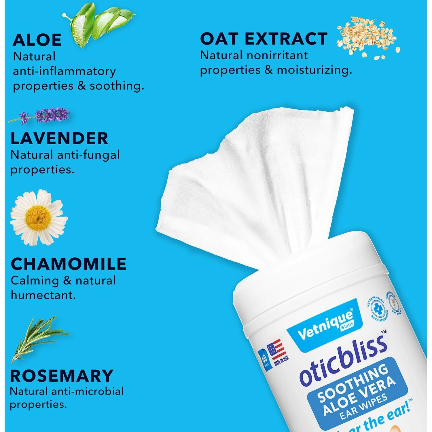 Vetnique Labs Oticbliss Aloe Vera With Essential Oils Dog & Cat Ear Wipes, 60 Count