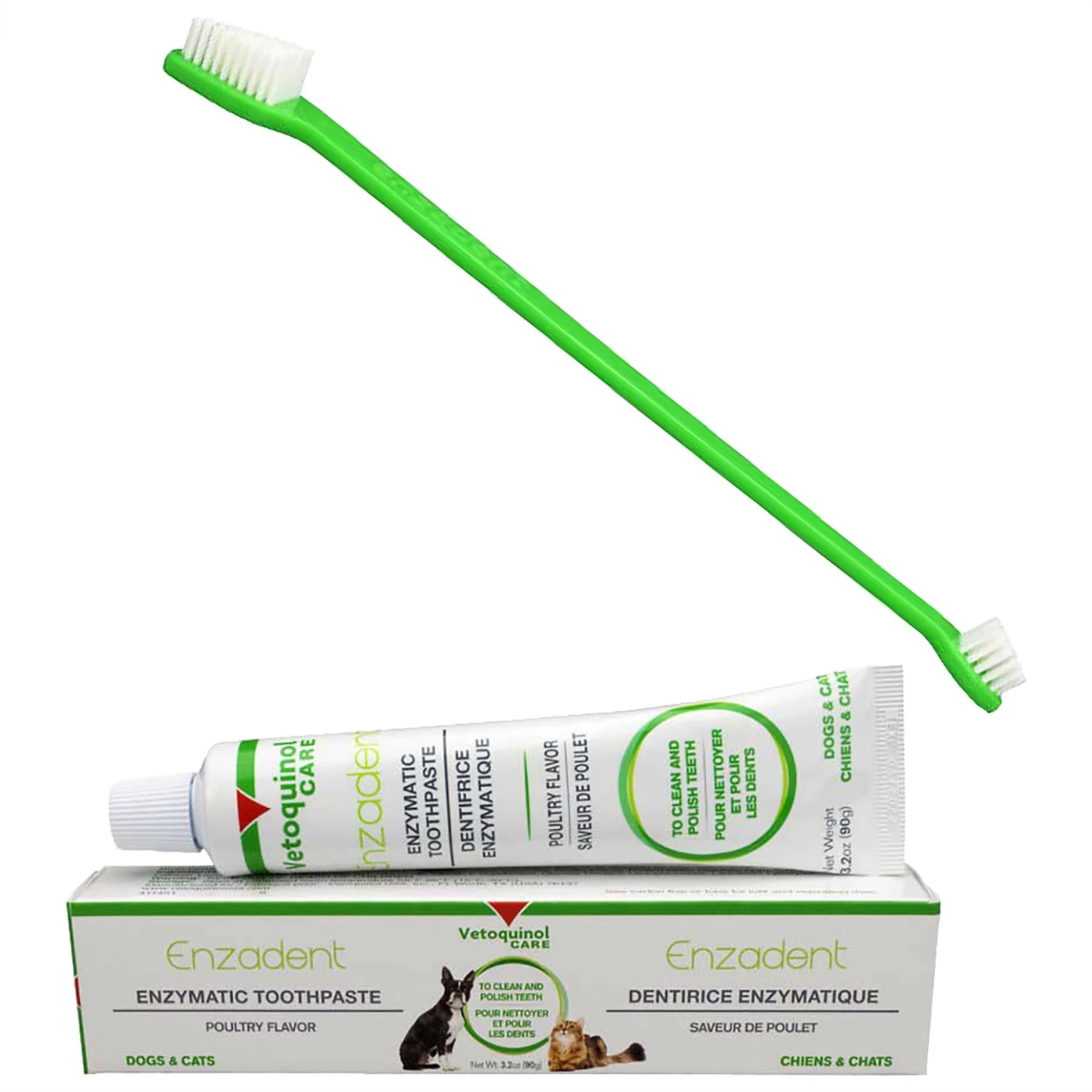 Vetoquinol Enzadent Enzymatic Poultry Flavor Dog & Cat Toothpaste & Vetoquinol Enzadent Dual-Ended Dog & Cat Toothbrush