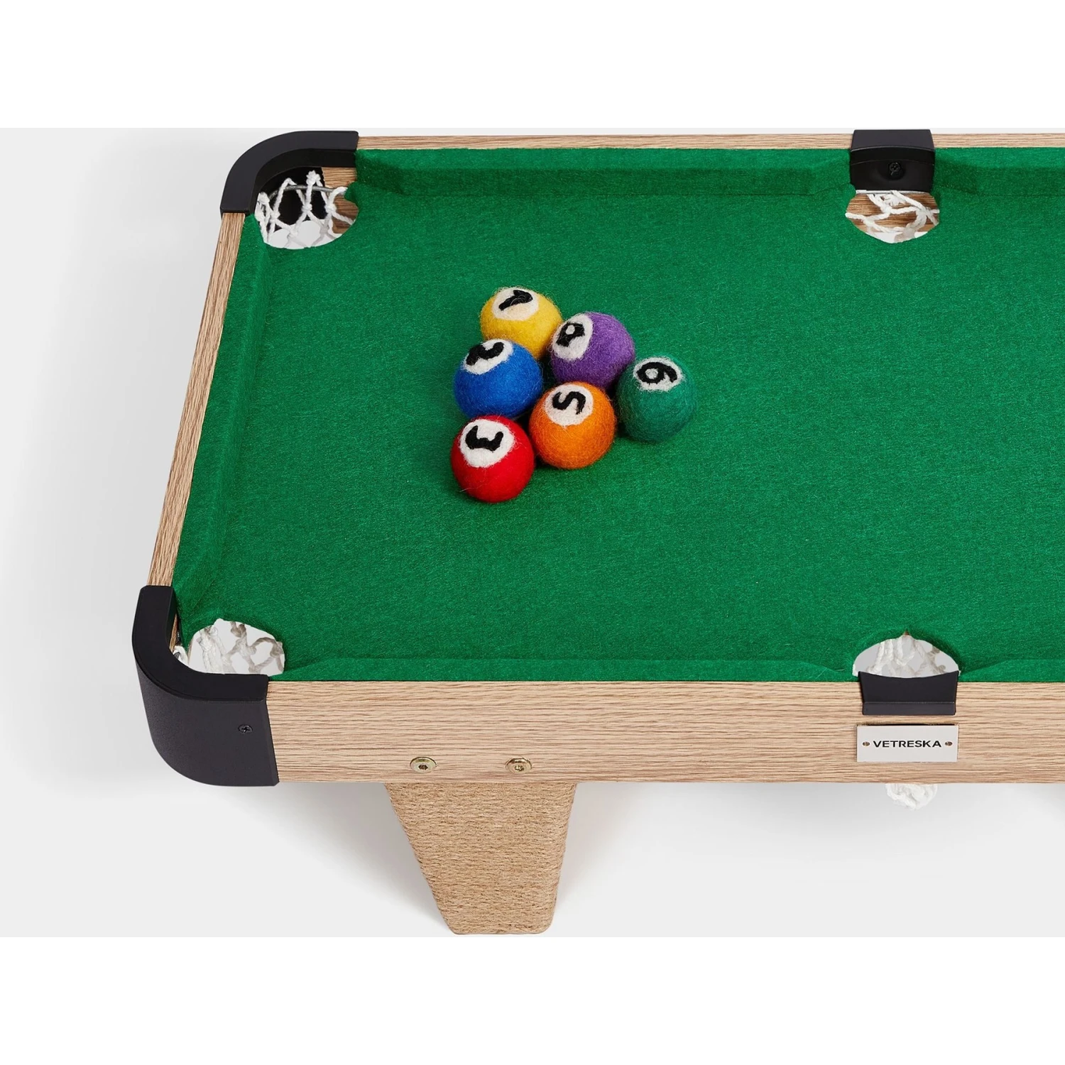 - This pool table for puddies comes with plenty of ways to play—each set includes 6 snooker balls, 2 cue stick feather wands and a felt-lined table with multiple scratching surfaces.