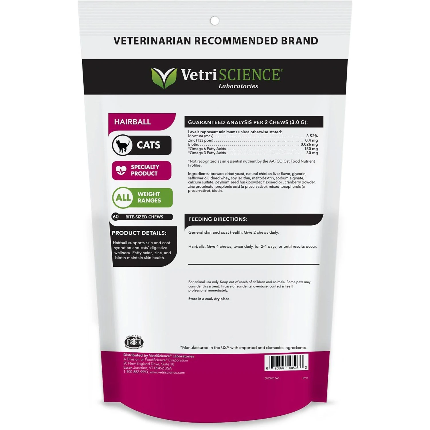 VetriScience Hairball Chicken Liver Flavored Soft Chews Hairball Control Supplement For Cats & Amazonia Bath Hairball Control Cat Shampoo, 16.9-oz Bottle