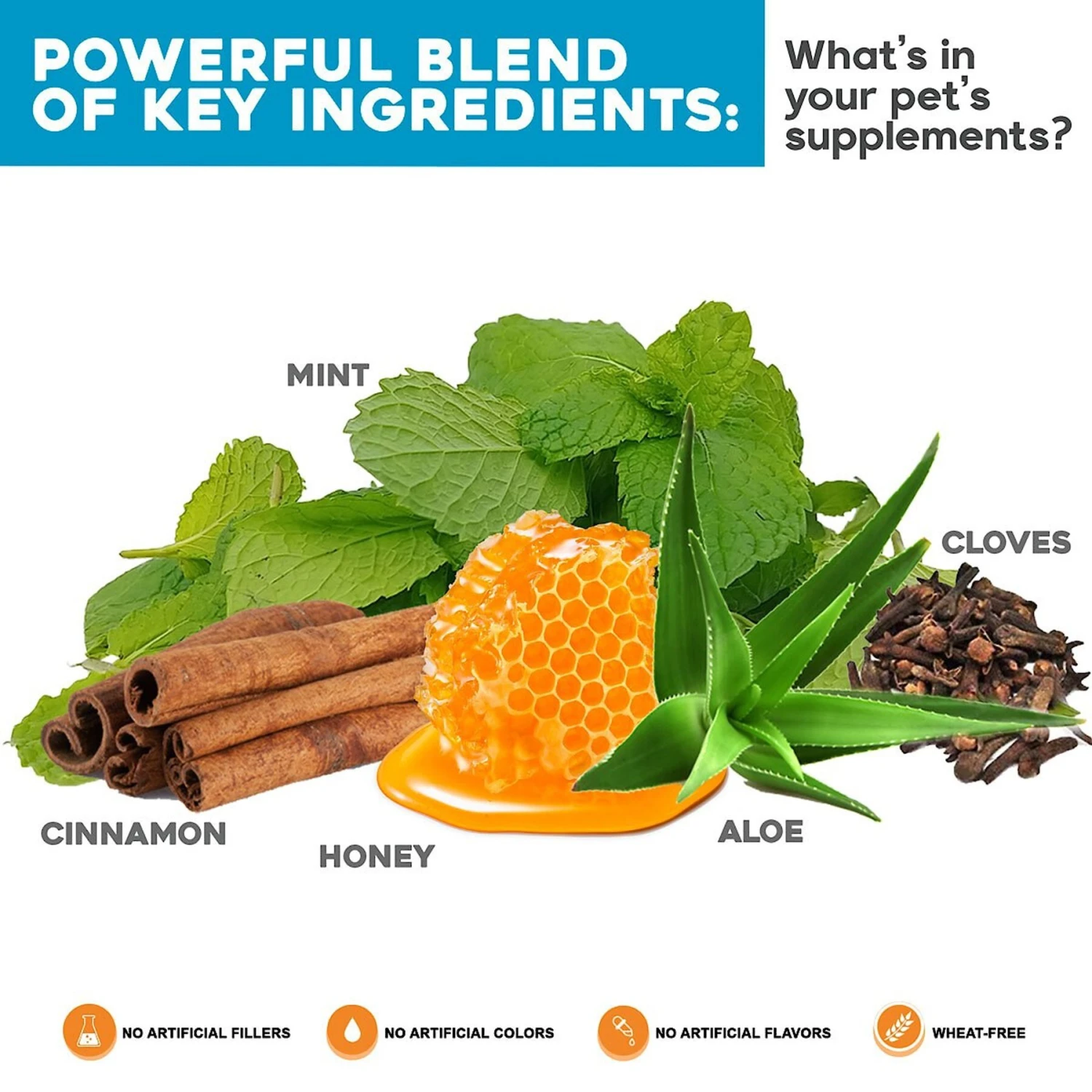 - Contains human grade, natural plant extracts like peppermint, cloves, honey, cinnamon and aloe to balance your paw-tner’s oral chemistry and soothe irritation.