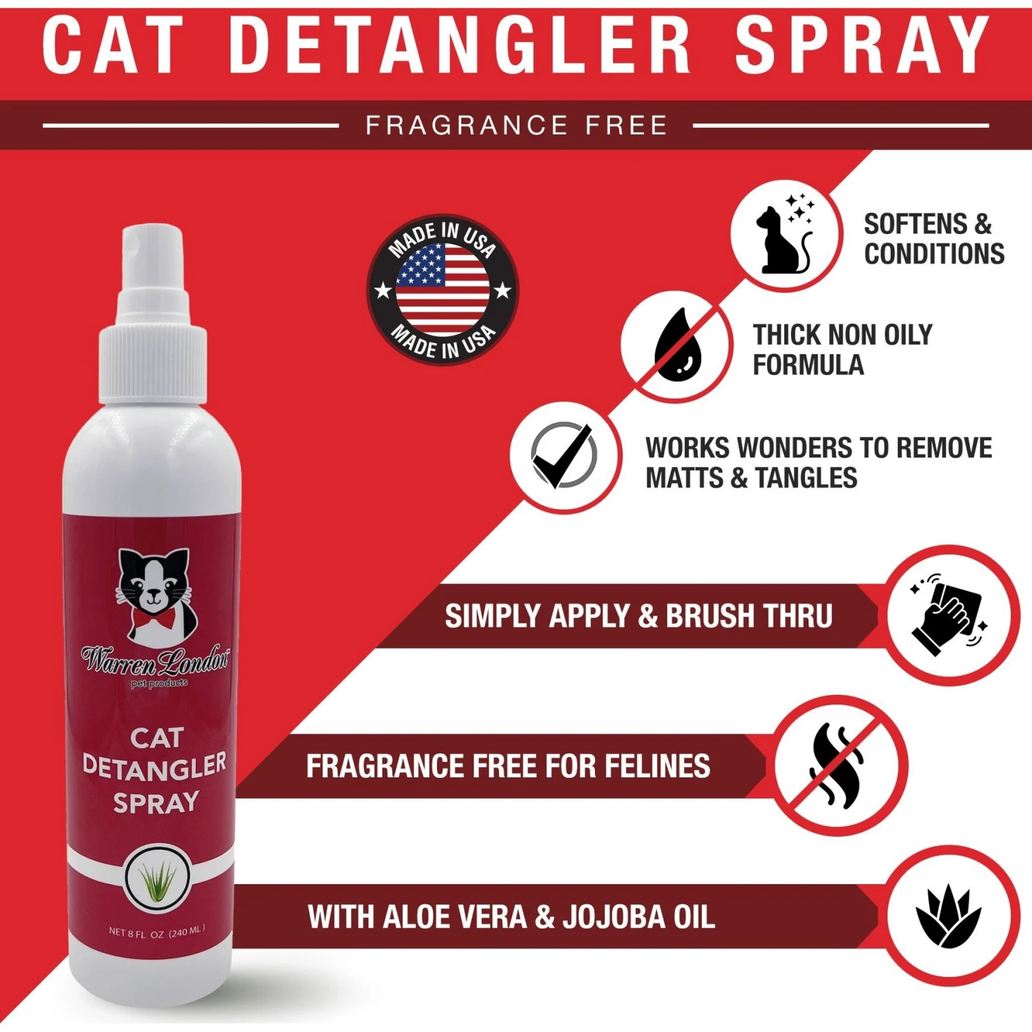 Warren London Unscented Cat Detangler Spray, 8-oz Bottle